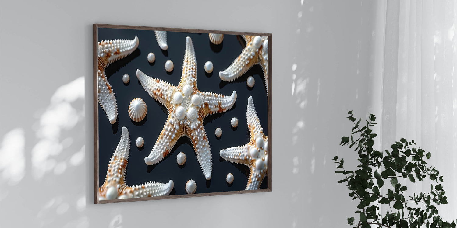 Elevate your decor with this beautiful starfish artwork, ideal for adding a touch of ocean-inspired sophistication to your home. Perfect for living rooms, bedrooms, or even office spaces, this piece will bring a sense of tranquility and elegance wherever it is displayed.