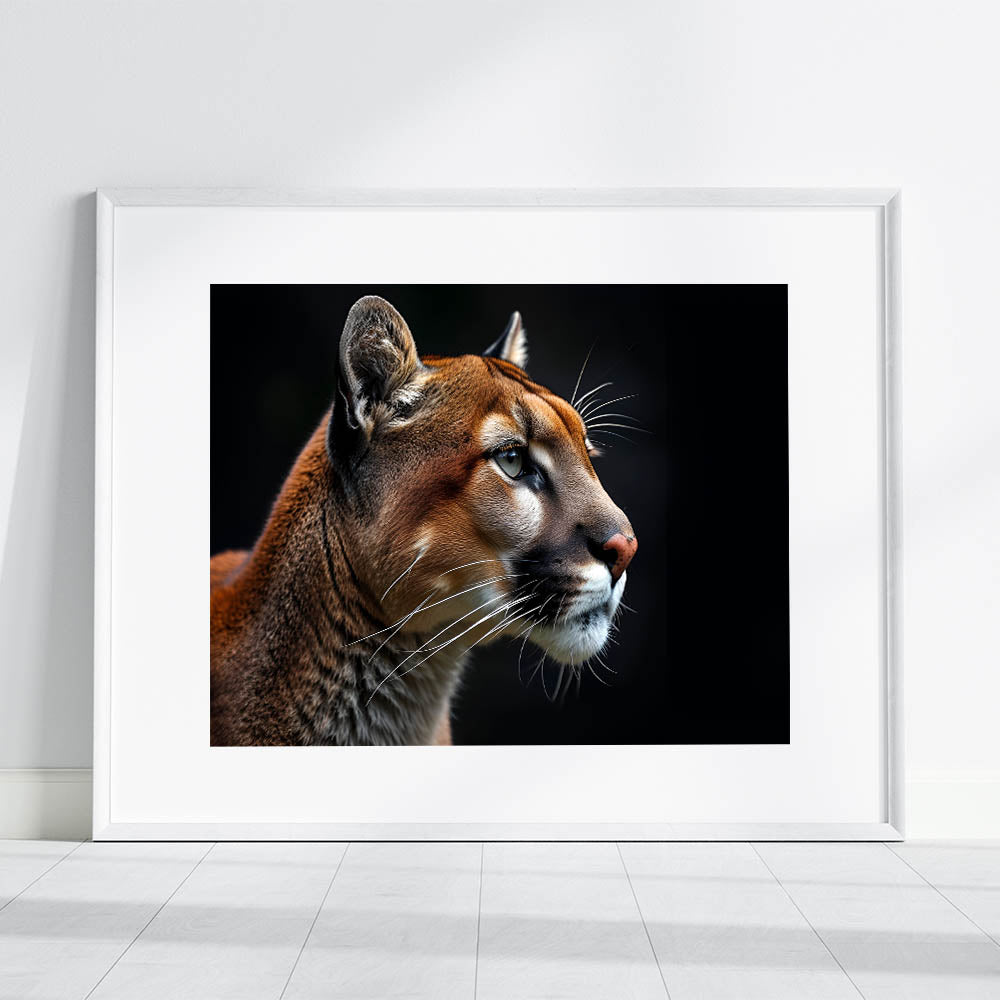 Add a touch of wilderness and elegance to your home with this Majestic Cougar Wall Art. Featuring a striking side profile of a cougar, the artwork captures its sharp gaze and regal demeanor against a dark, minimalistic background. The rich tones of the cougar’s fur stand out brilliantly, creating a captivating piece that embodies strength and grace. Perfect for wildlife enthusiasts or anyone looking to elevate their interior decor with a sophisticated statement piece.