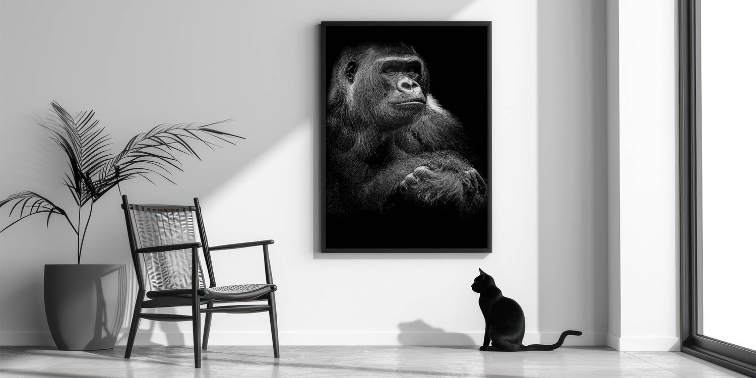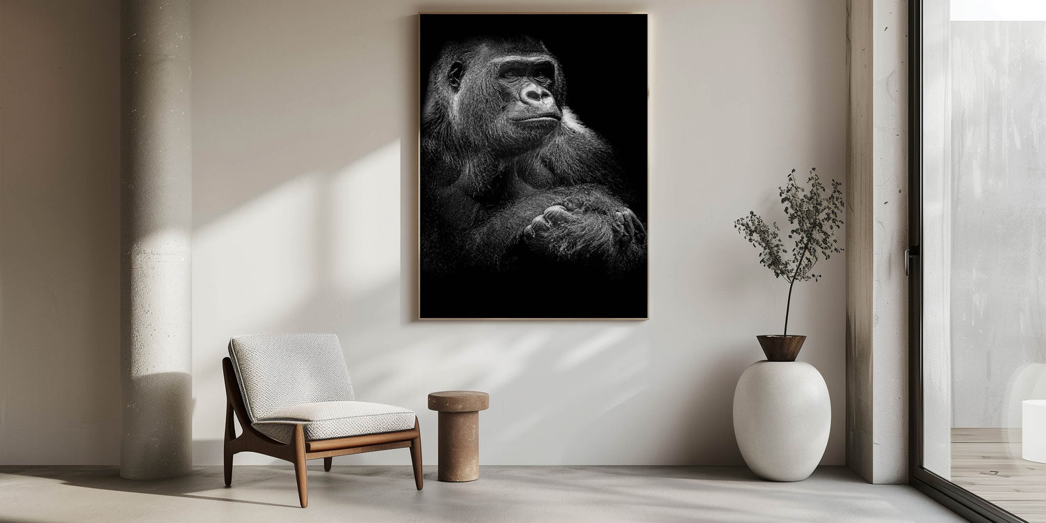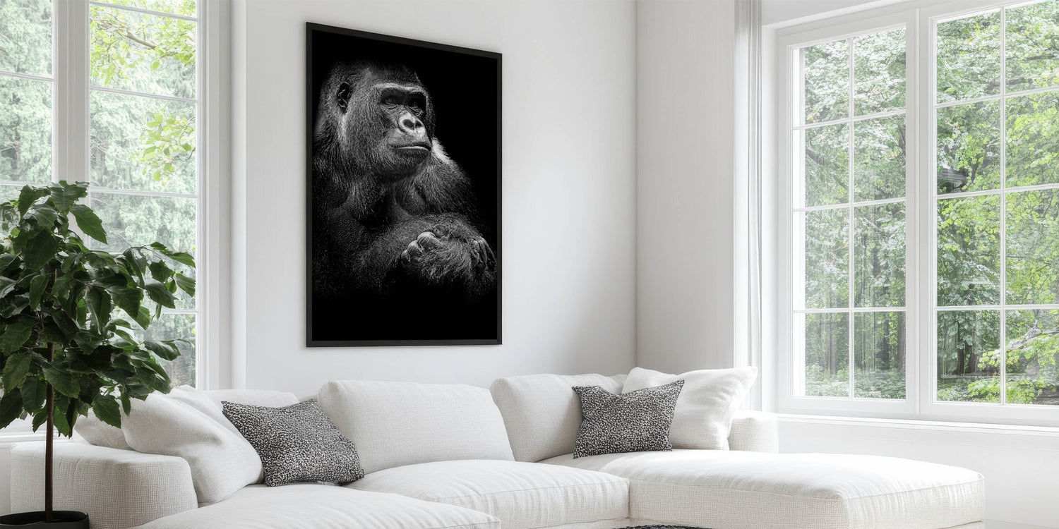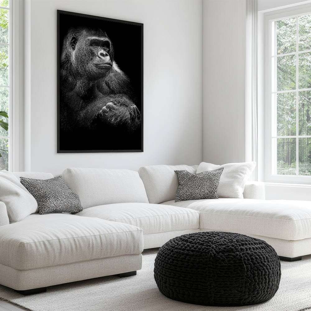 - Stunning Detail: The monochrome palette highlights the intricate details of the gorilla’s features, making it a striking focal point in any space.