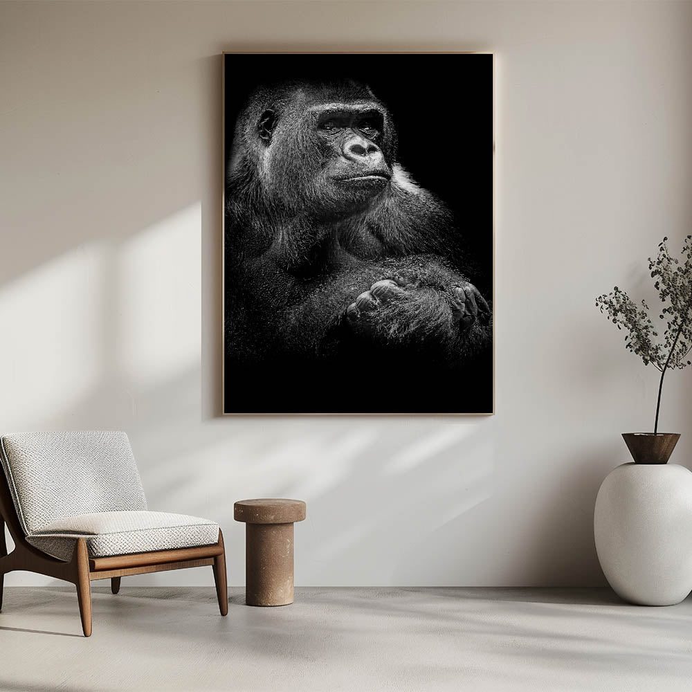 Majestic Gorilla Portrait - Black and White Primate Canvas Art