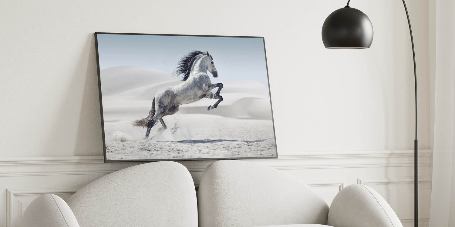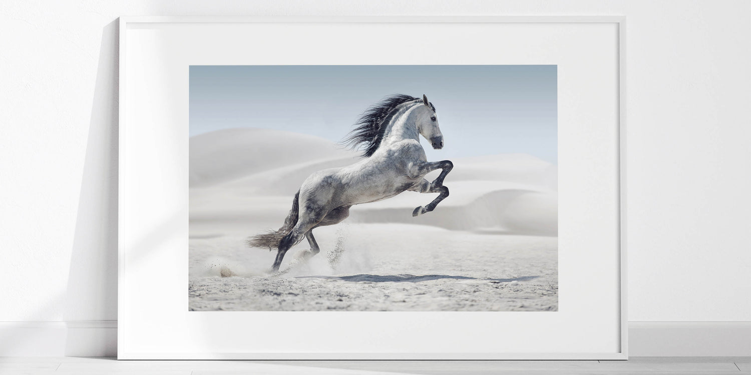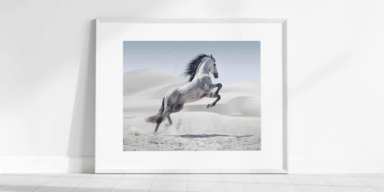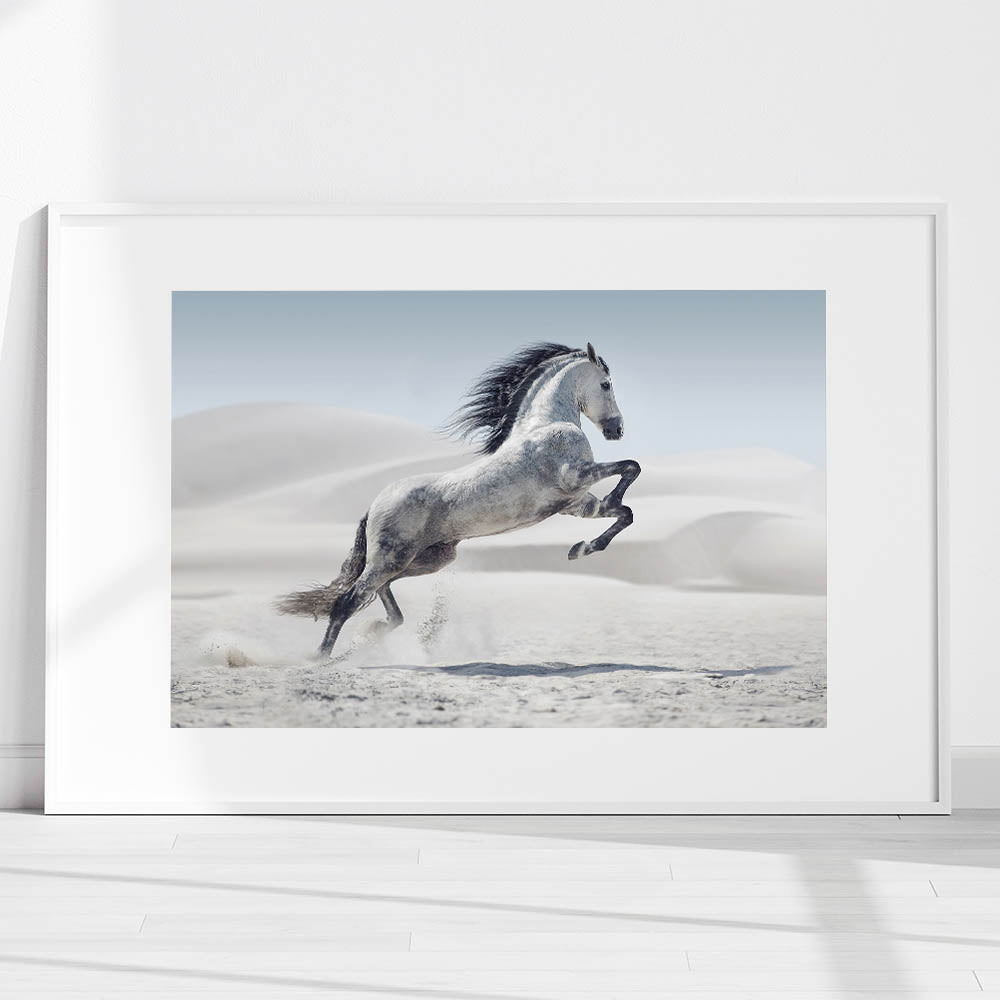 Majestic White Horse in Desert - Wildlife Photography Wall Art