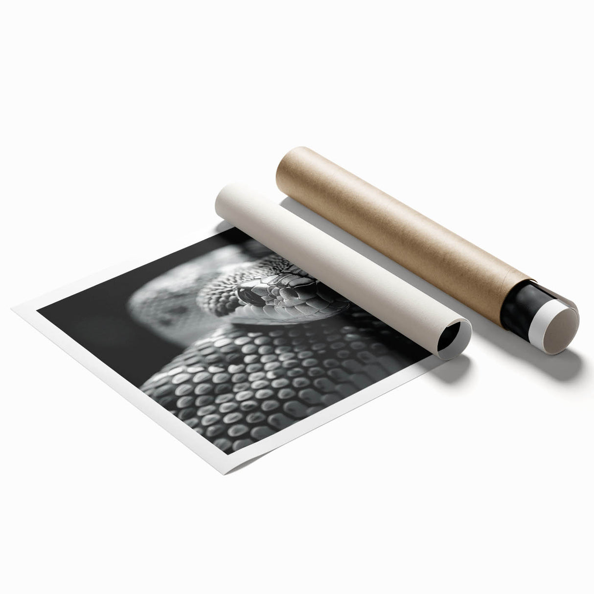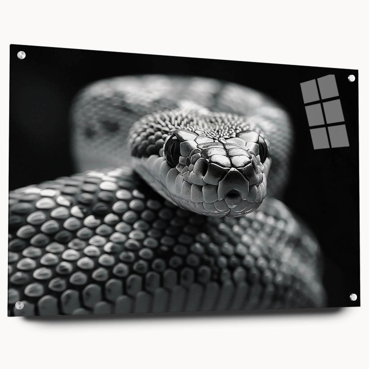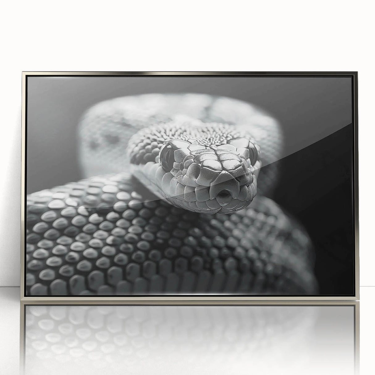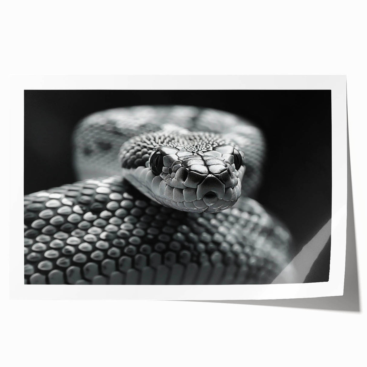 Enhance your space with the Monochrome Snake Wall Art, a striking piece that captures the captivating allure of a snake in stunning black and white. This artwork features a detailed close-up of a serpent, highlighting the intricate texture of its scales and the intensity of its gaze. The monochrome color palette adds a modern and sophisticated touch, making it an ideal choice for minimalist and contemporary interiors.