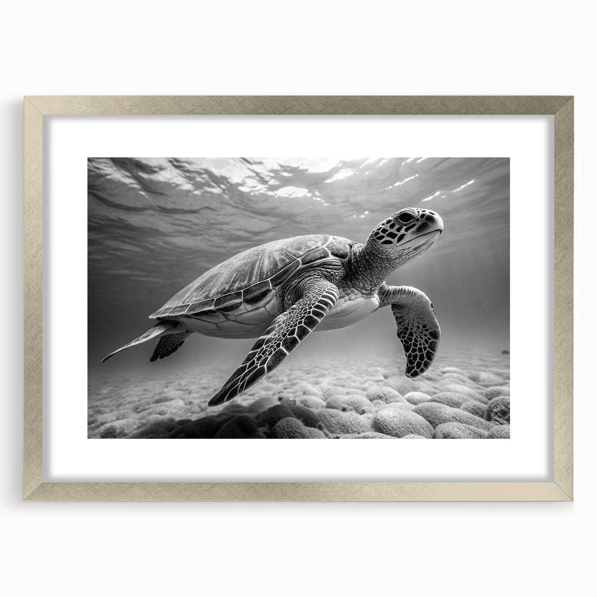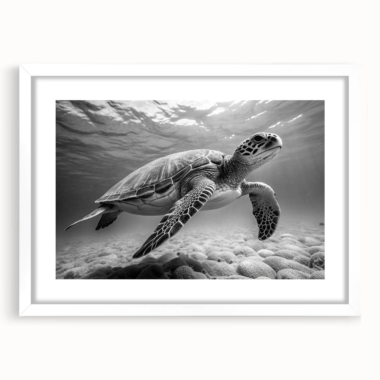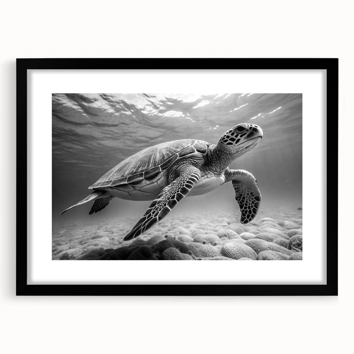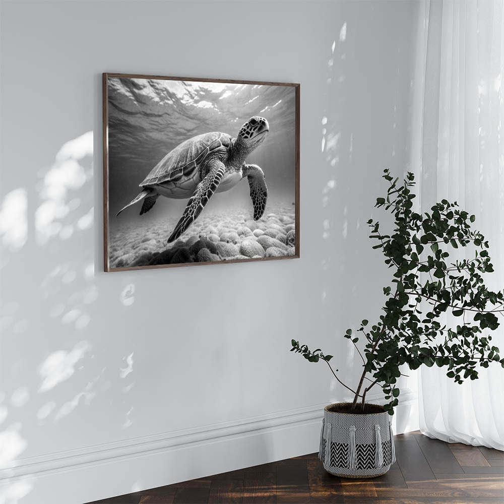 Monochrome Turtle Underwater Art – Black & White Marine Decor