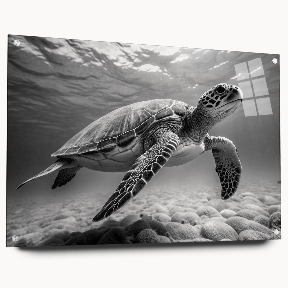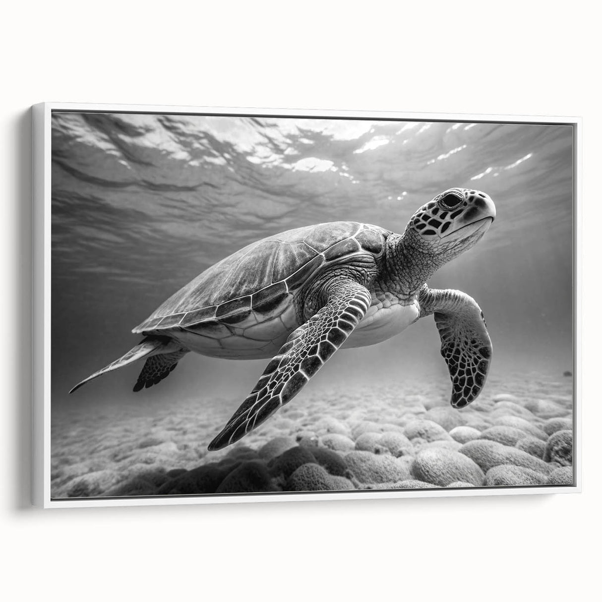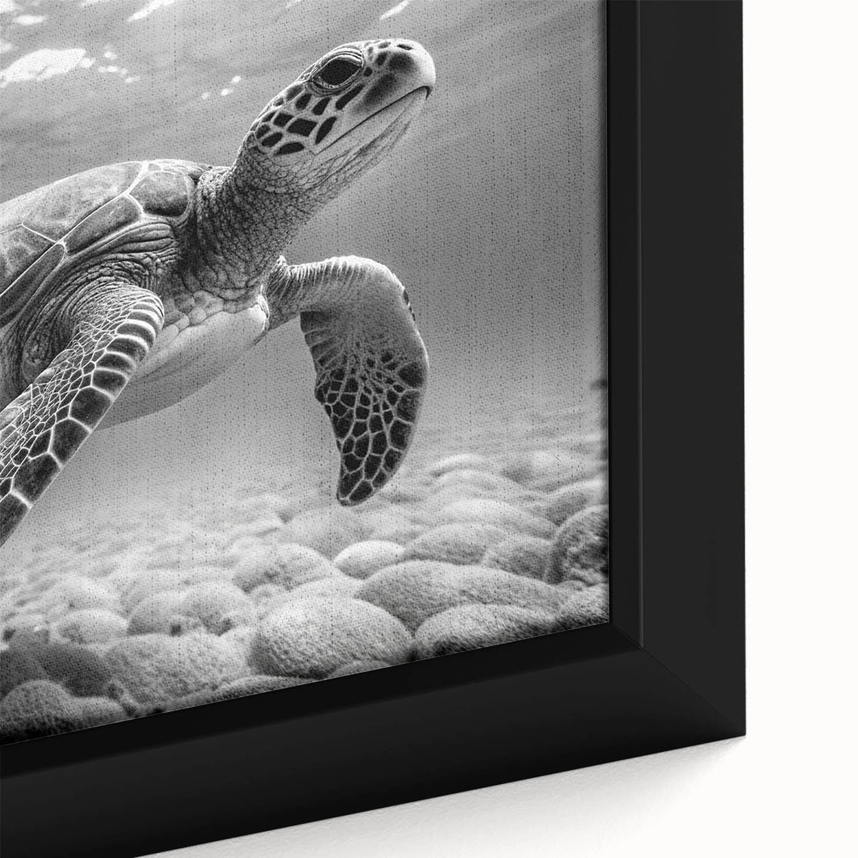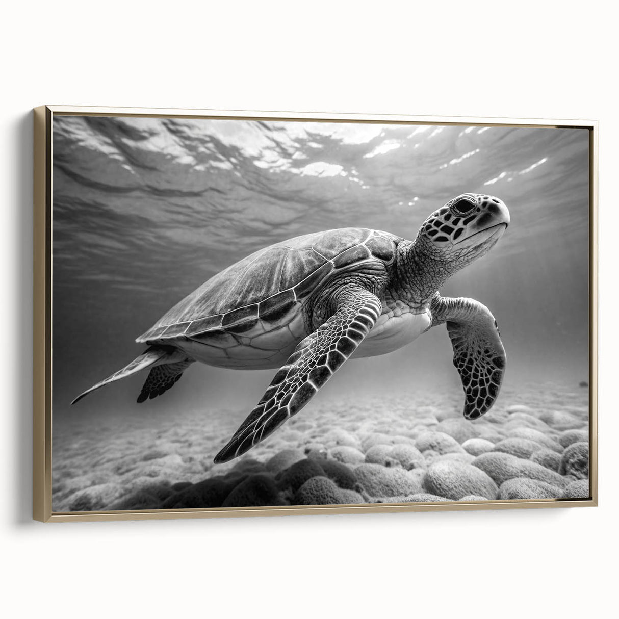 Monochrome Turtle Underwater Art – Black & White Marine Decor