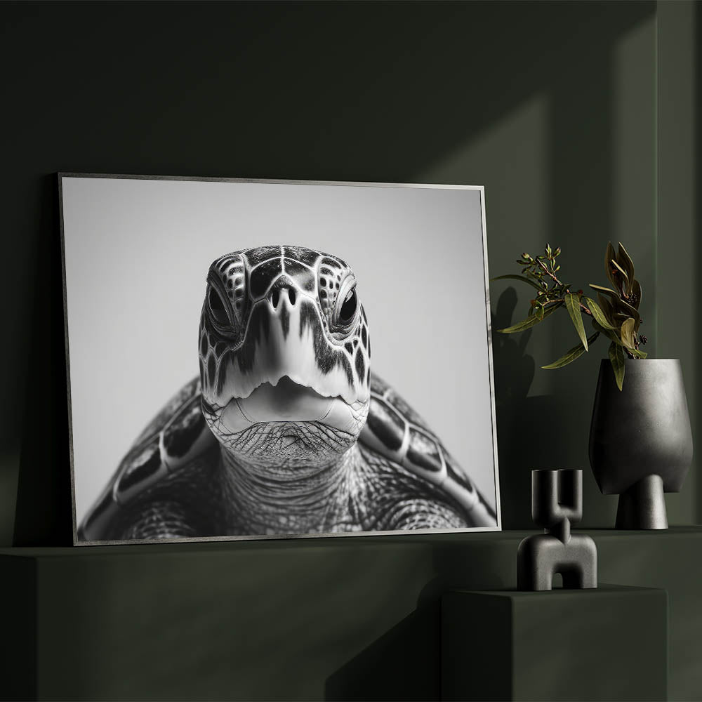 This monochrome turtle art piece is perfect for those who appreciate the beauty of simplicity and the elegance of black and white design. Transform your space with this modern marine life artwork.