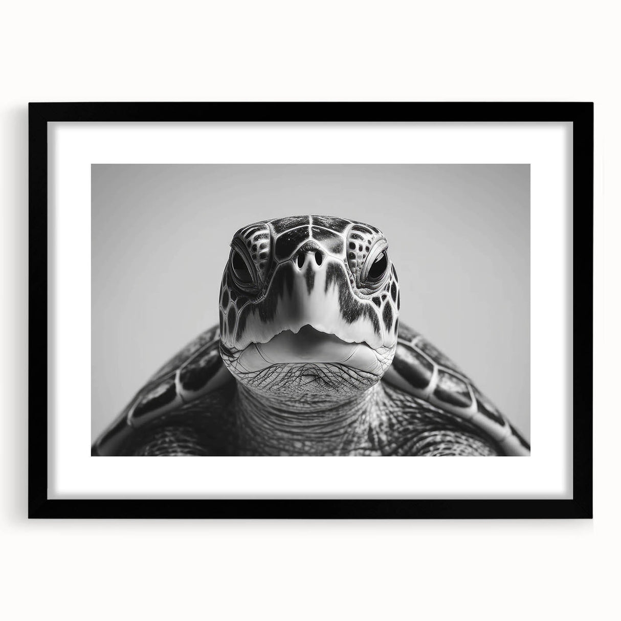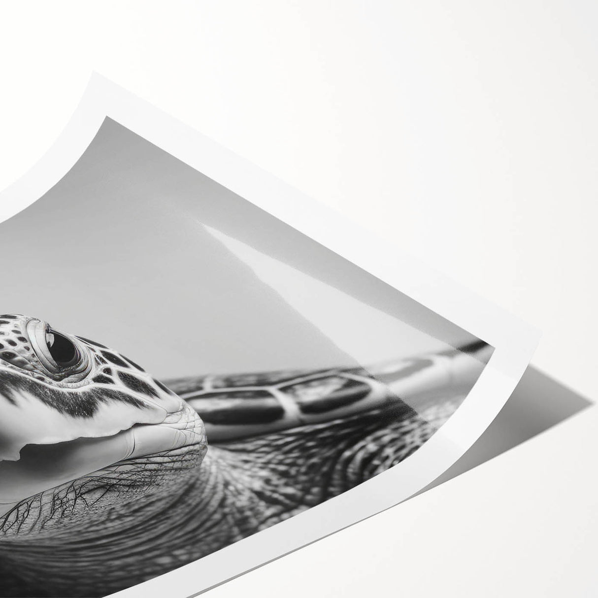 Elevate your space with the striking simplicity of this monochrome turtle wall art. Capturing the essence of a sea turtle in stunning black and white, this artwork exudes a modern, sophisticated vibe that is perfect for minimalist and contemporary interiors. The sharp contrast and detailed textures bring out the turtle's features in a captivating way, making this piece a true statement in any room. Whether you're a fan of marine life or simply appreciate clean, elegant design, this artwork is a perfect addition to your collection.