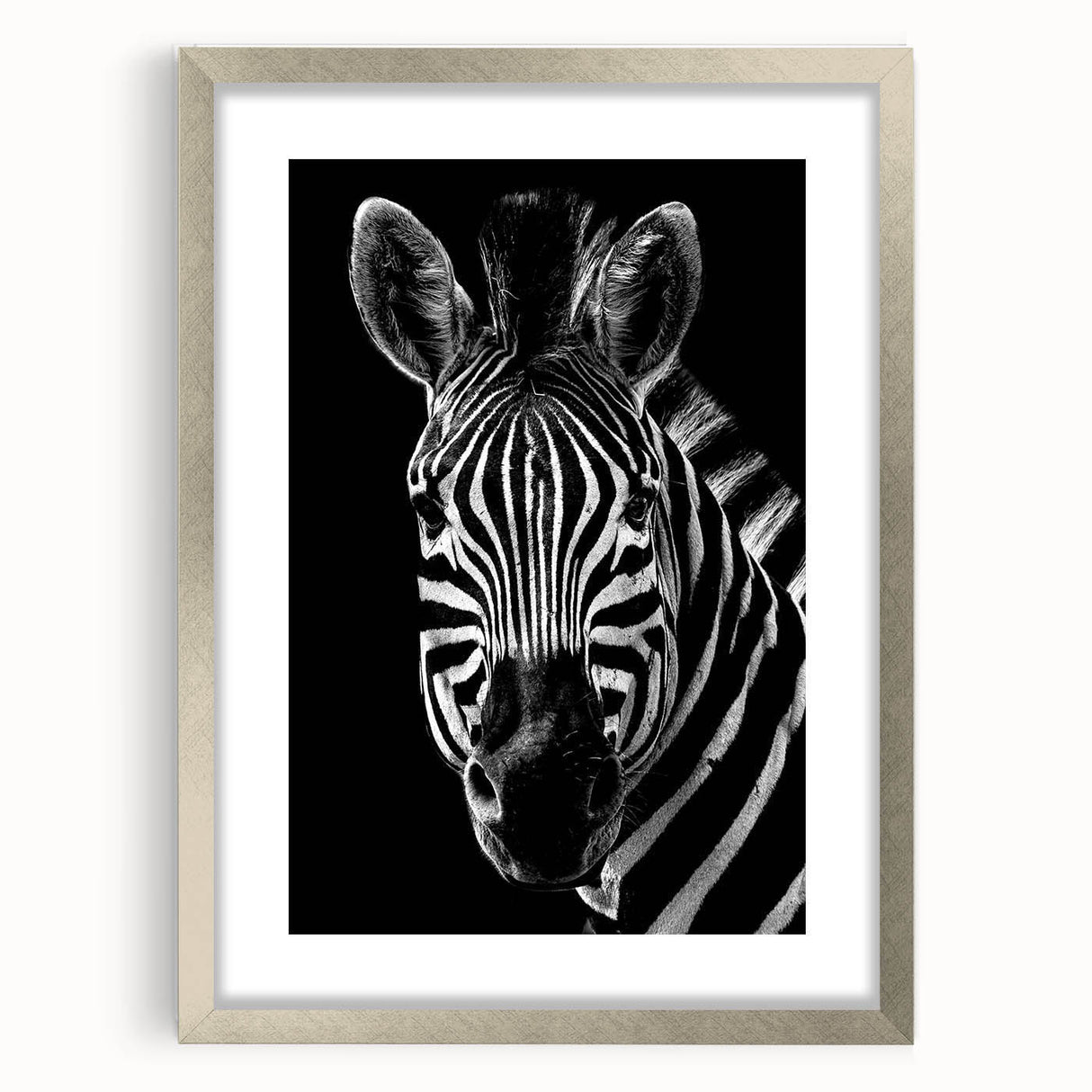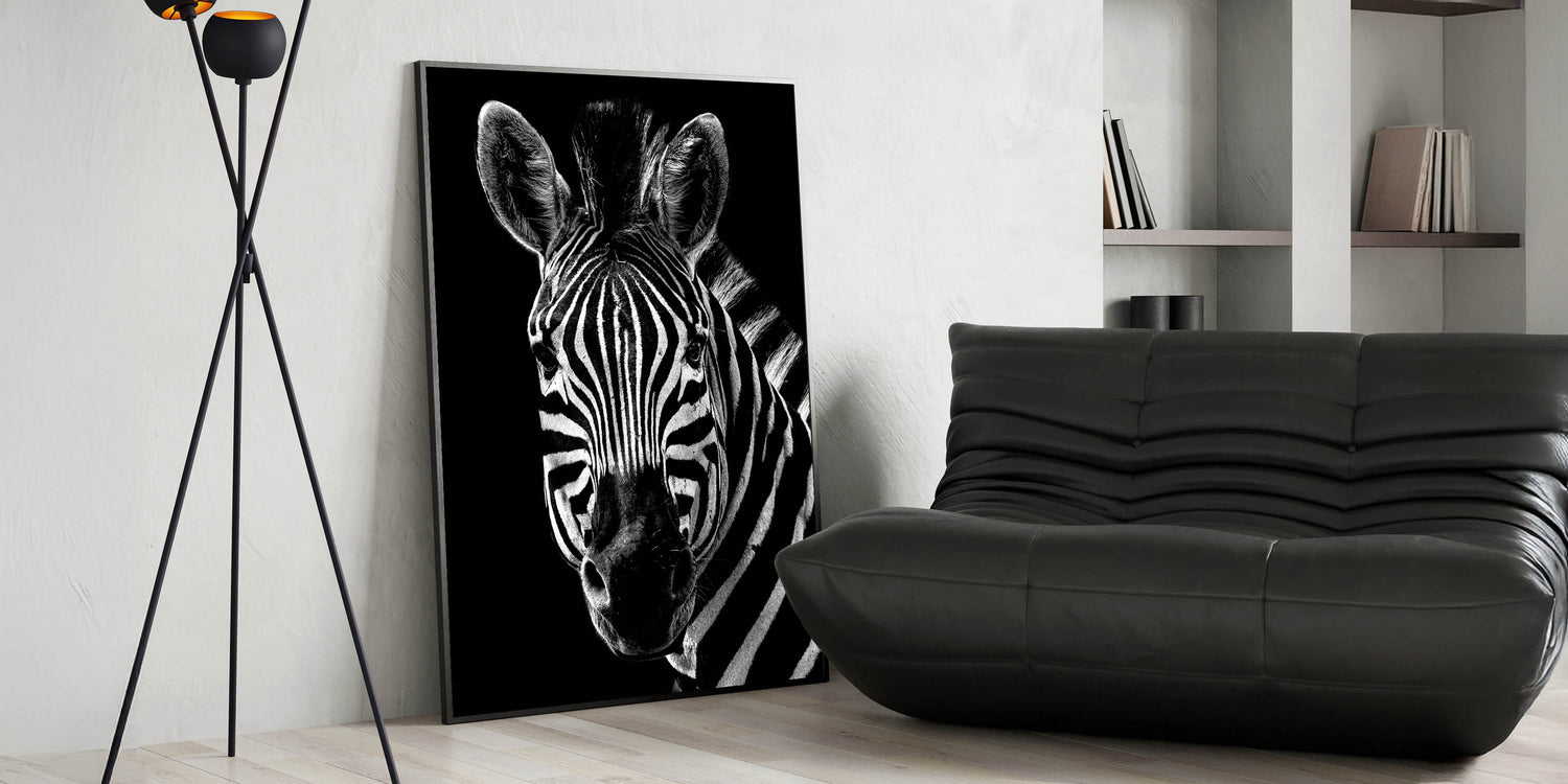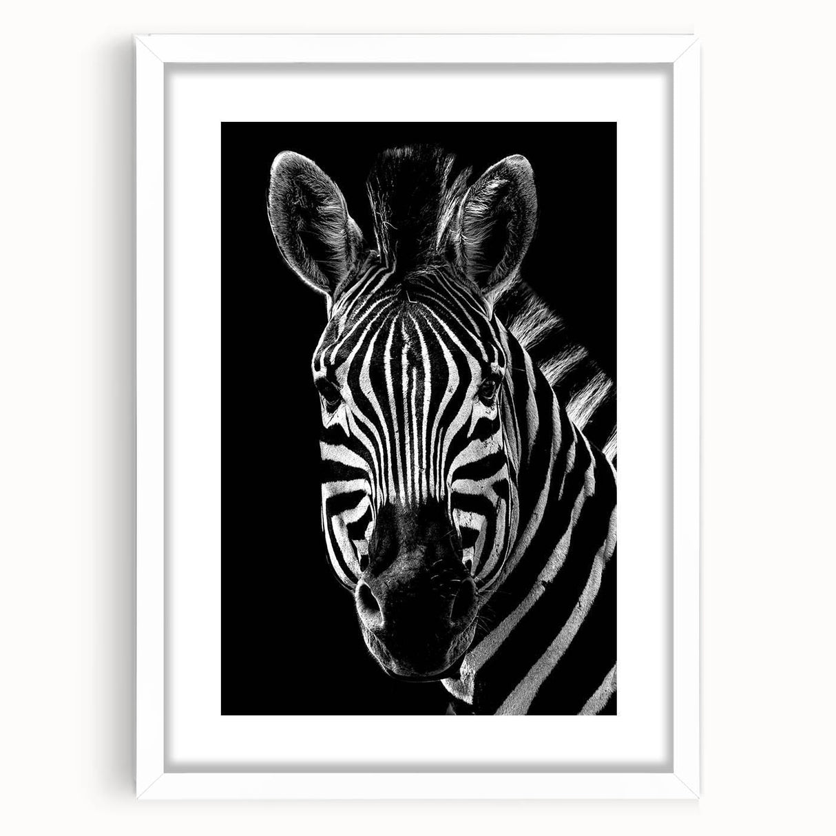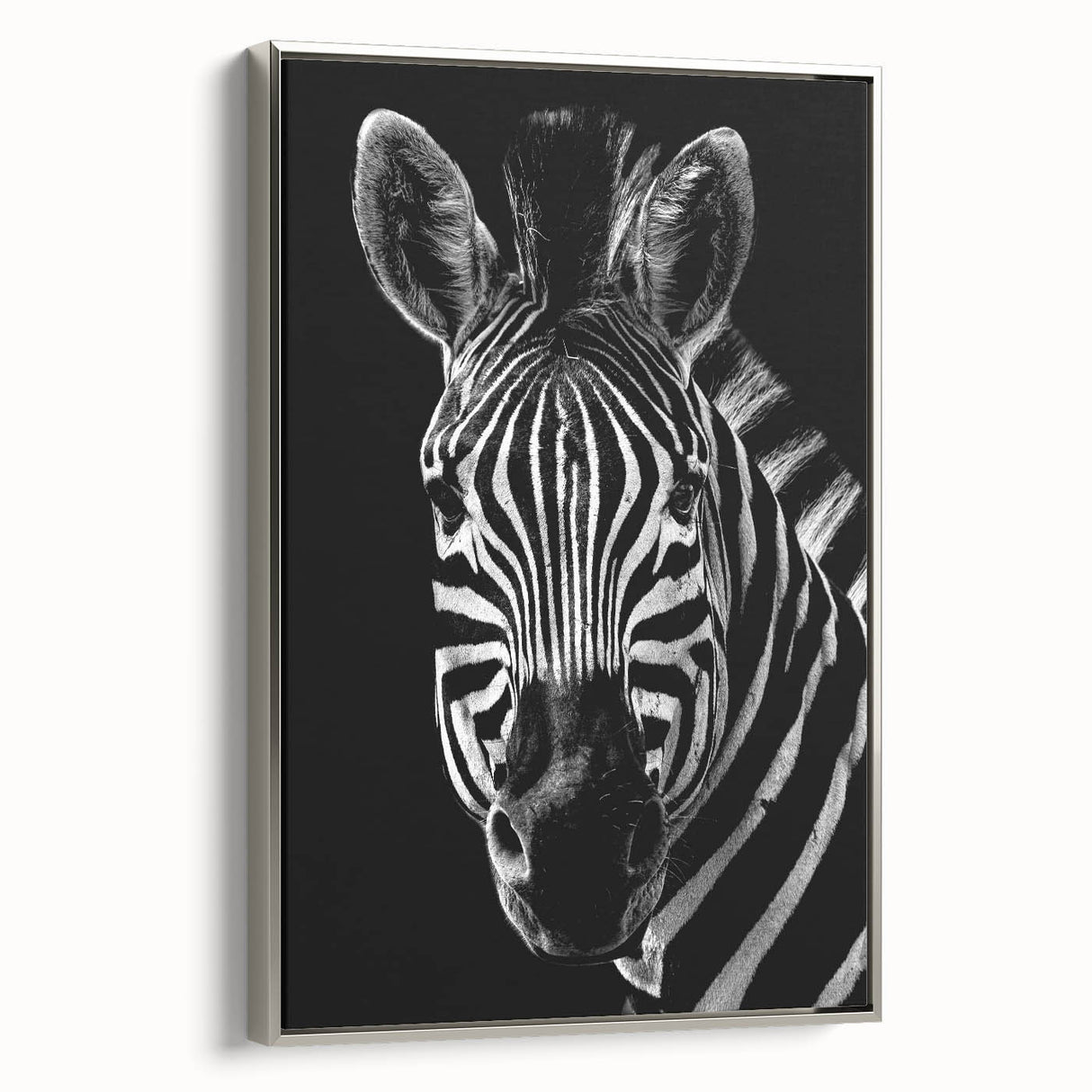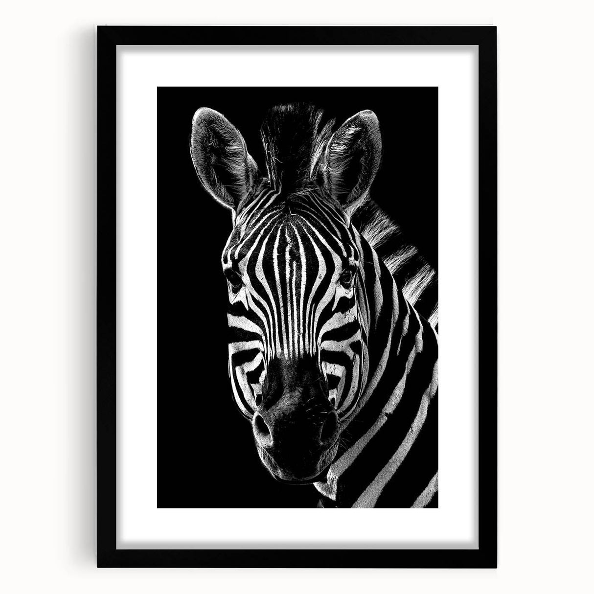 - Bold Design: High-contrast black and white zebra portrait, ideal for contemporary spaces.