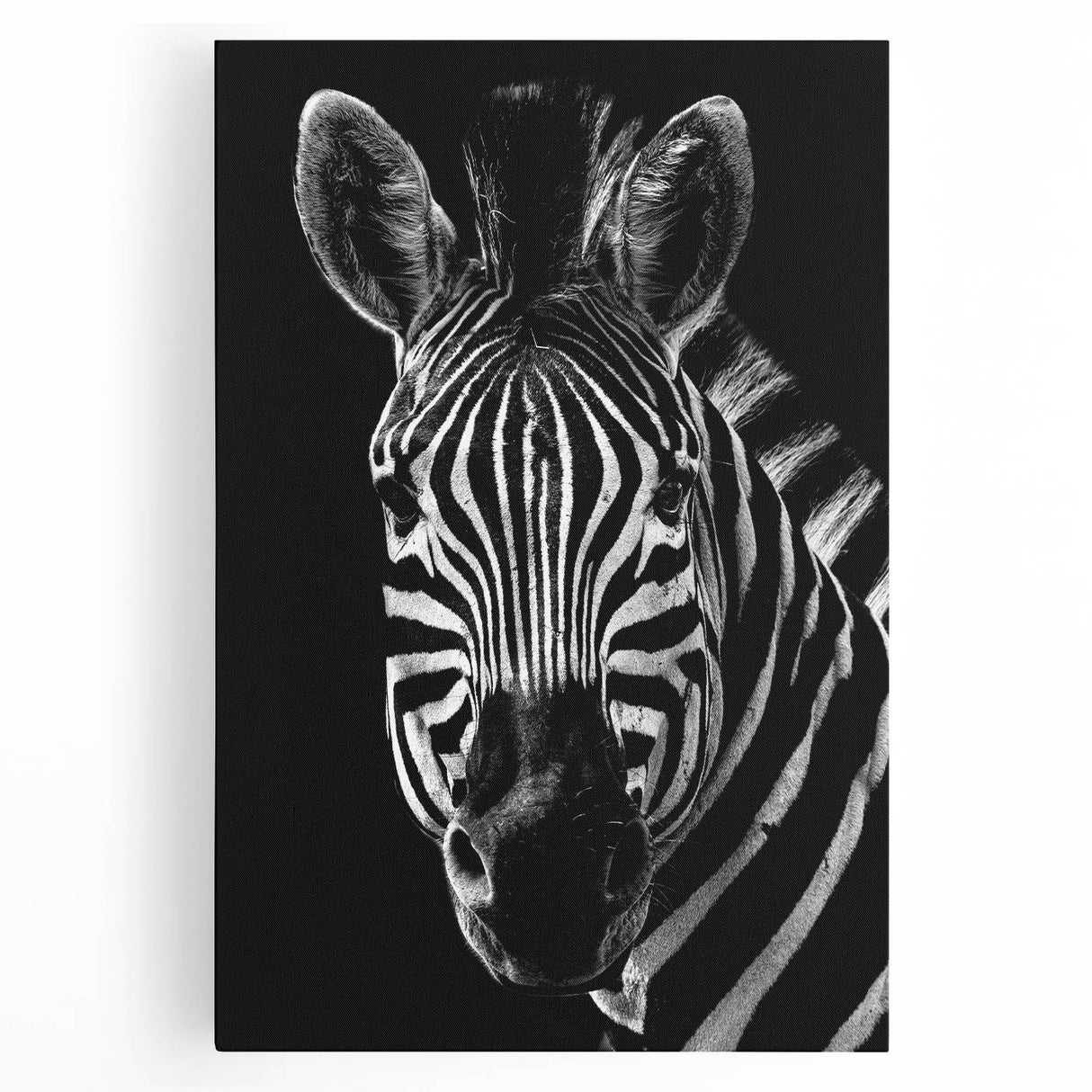 Monochrome Zebra Wall Art - Striking Black and White Canvas Print