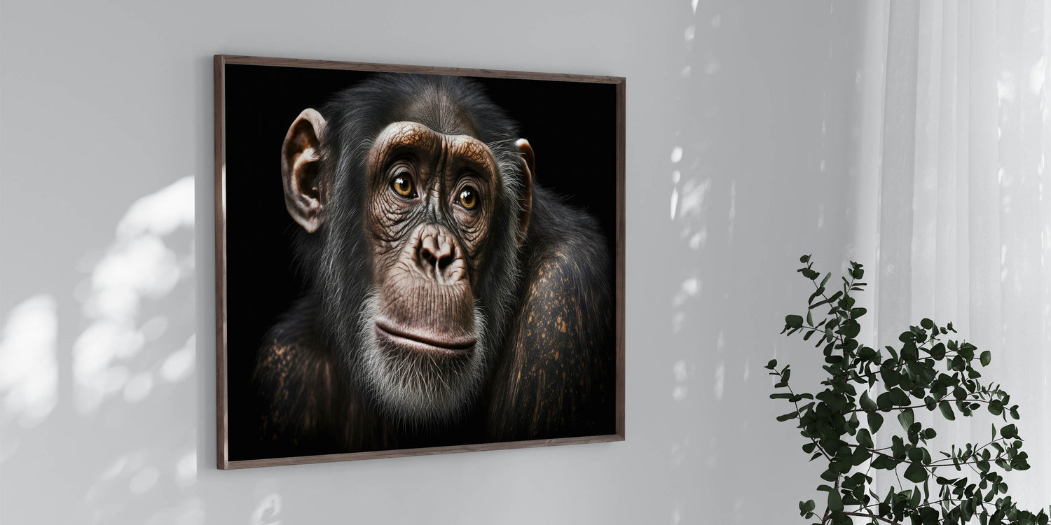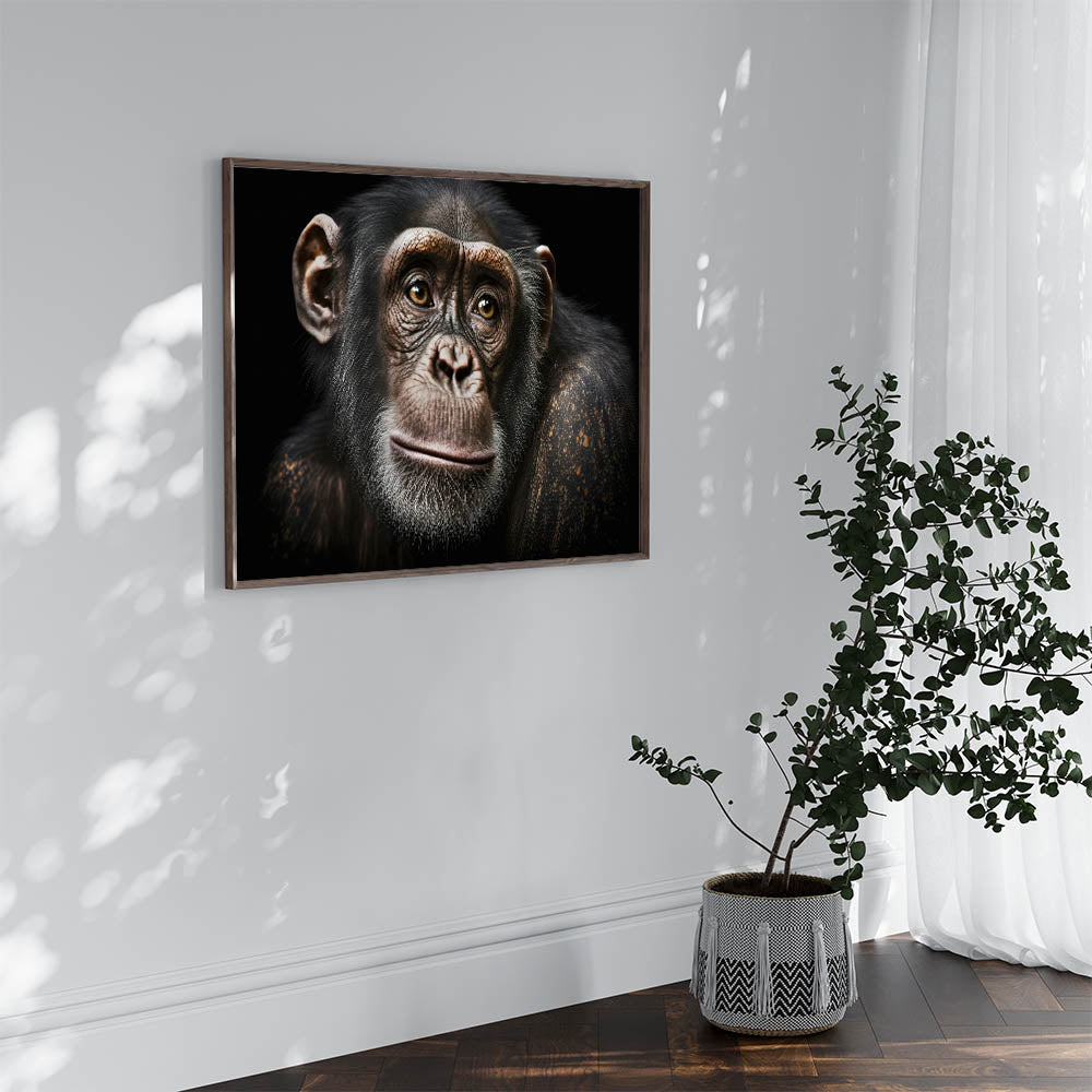 Bring a touch of the wild into your home with this remarkable chimpanzee portrait. Whether you're decorating your home, office, or studio, this piece is sure to impress and inspire with its lifelike depiction and emotional depth.