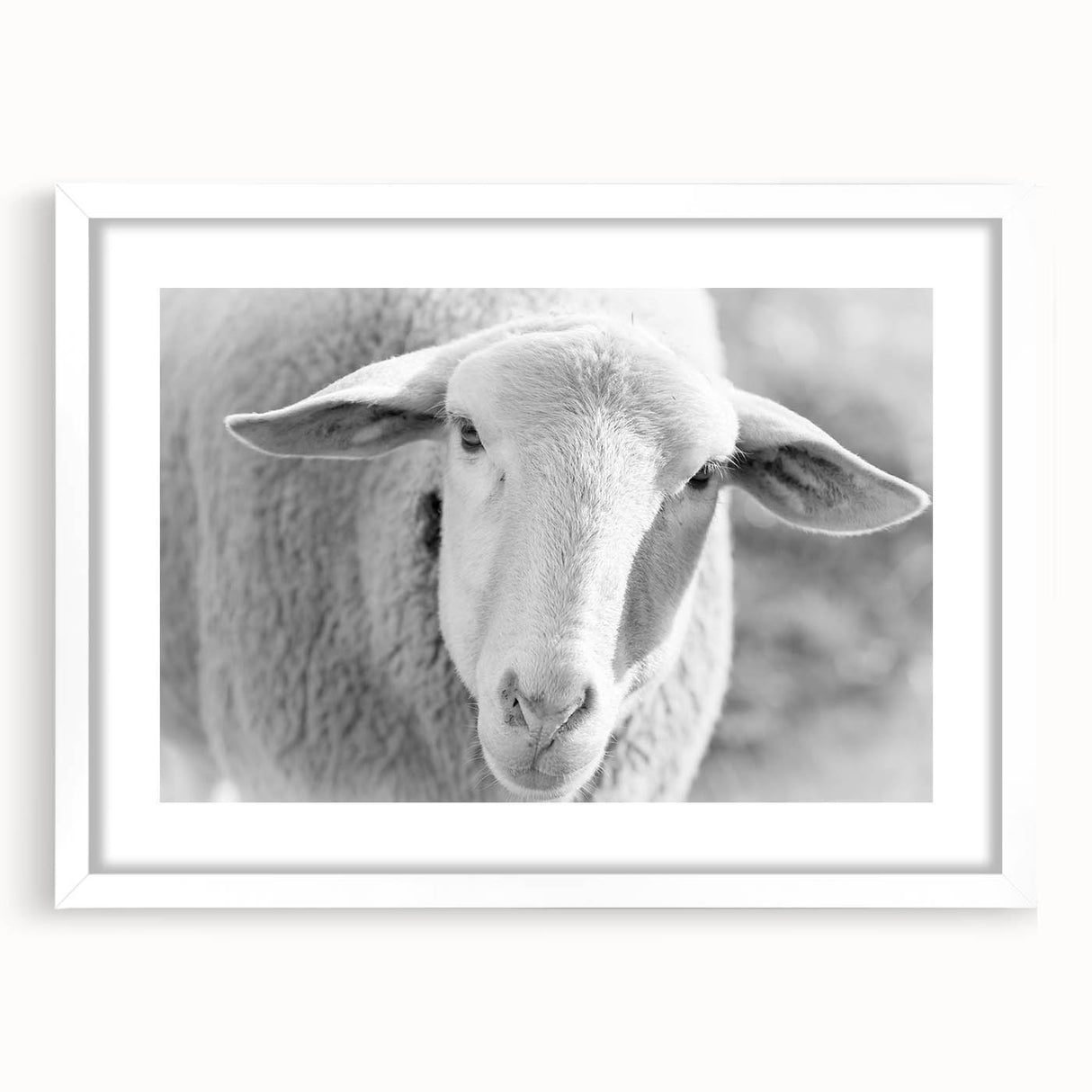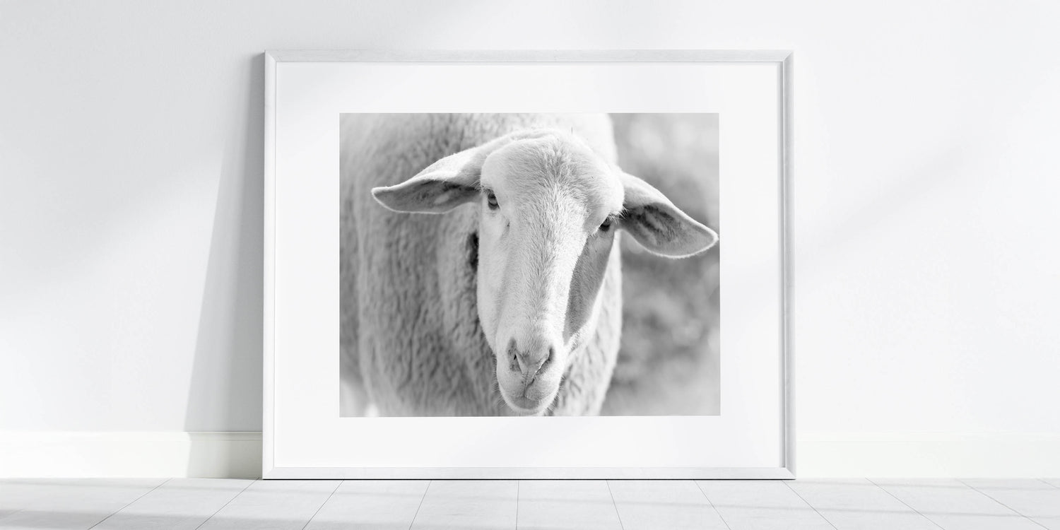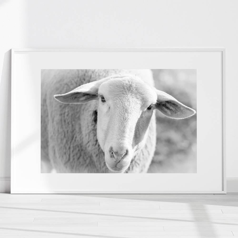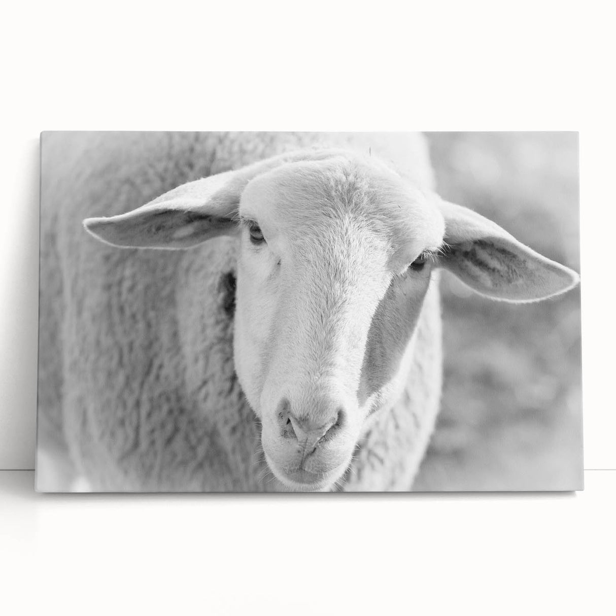 Bring the peaceful essence of rural life into your home with this serene Sheep Wall Art. This captivating black and white photograph captures the gentle gaze of a sheep, evoking a sense of calm and simplicity. Perfect for adding a touch of rustic charm to any space, this artwork is a beautiful representation of farm life, making it an ideal piece for animal lovers and farmhouse-style decor enthusiasts.