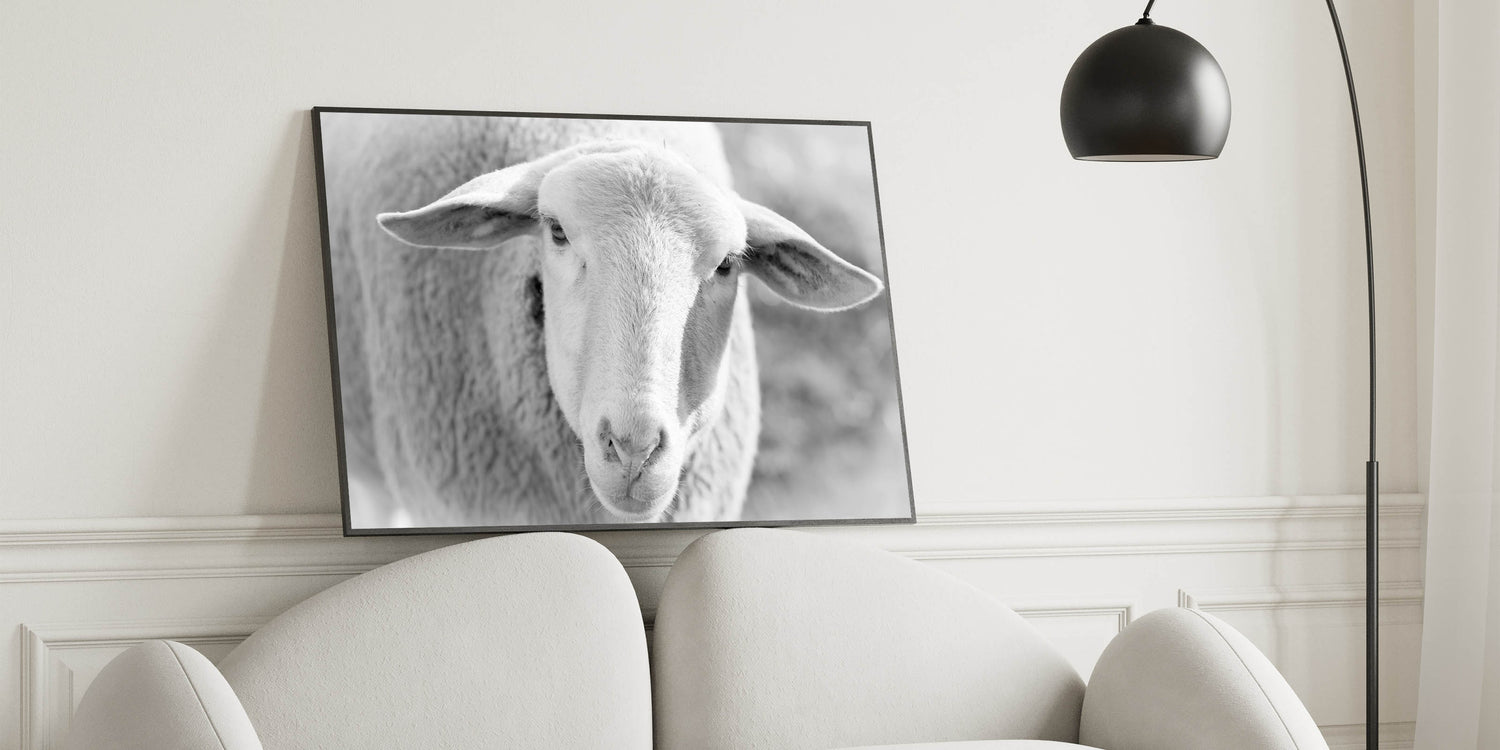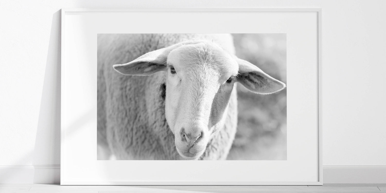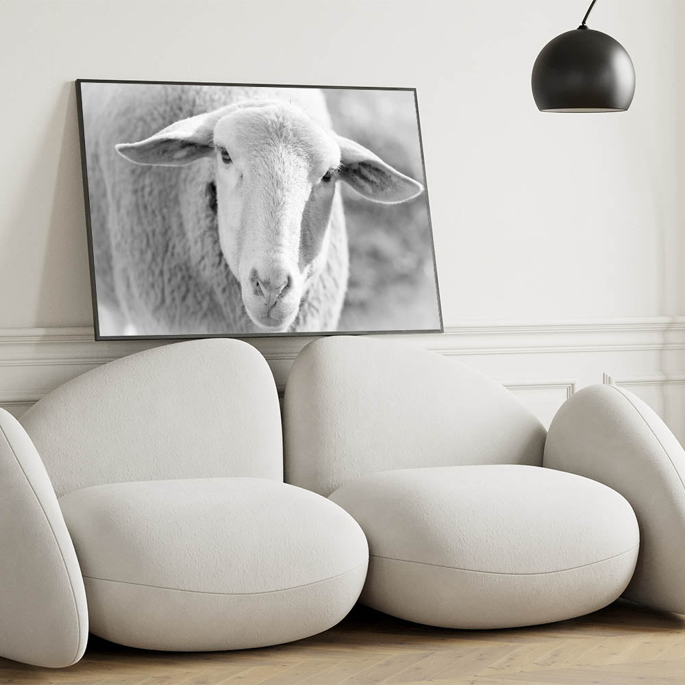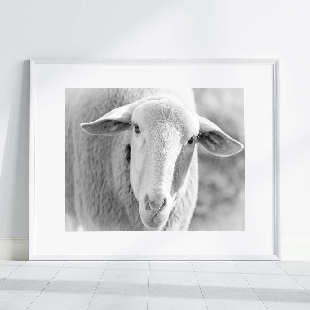 Bring the peaceful essence of rural life into your home with this serene Sheep Wall Art. This captivating black and white photograph captures the gentle gaze of a sheep, evoking a sense of calm and simplicity. Perfect for adding a touch of rustic charm to any space, this artwork is a beautiful representation of farm life, making it an ideal piece for animal lovers and farmhouse-style decor enthusiasts.