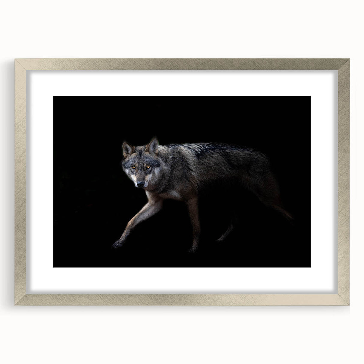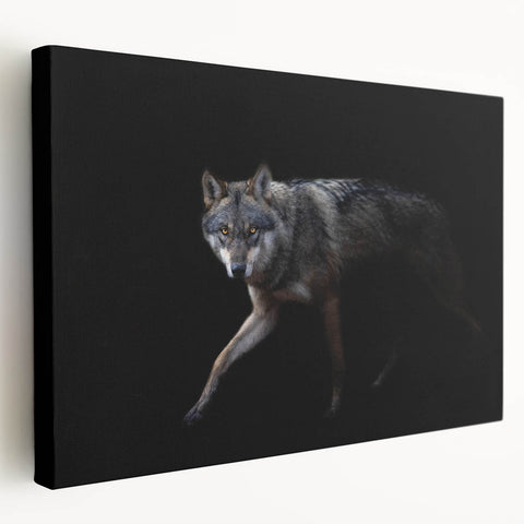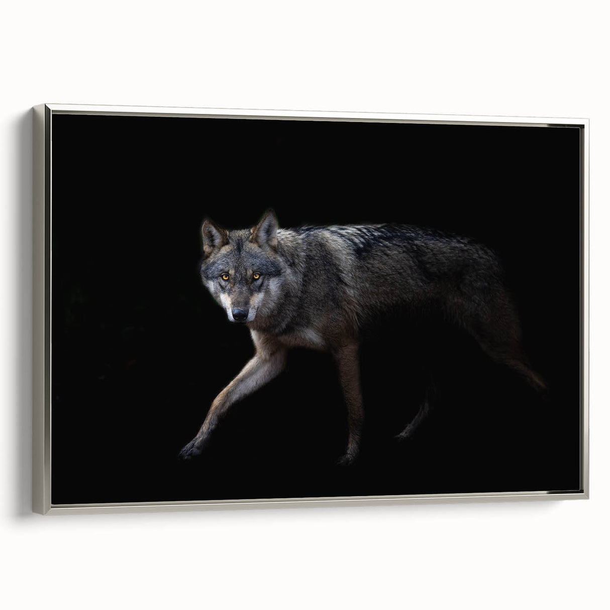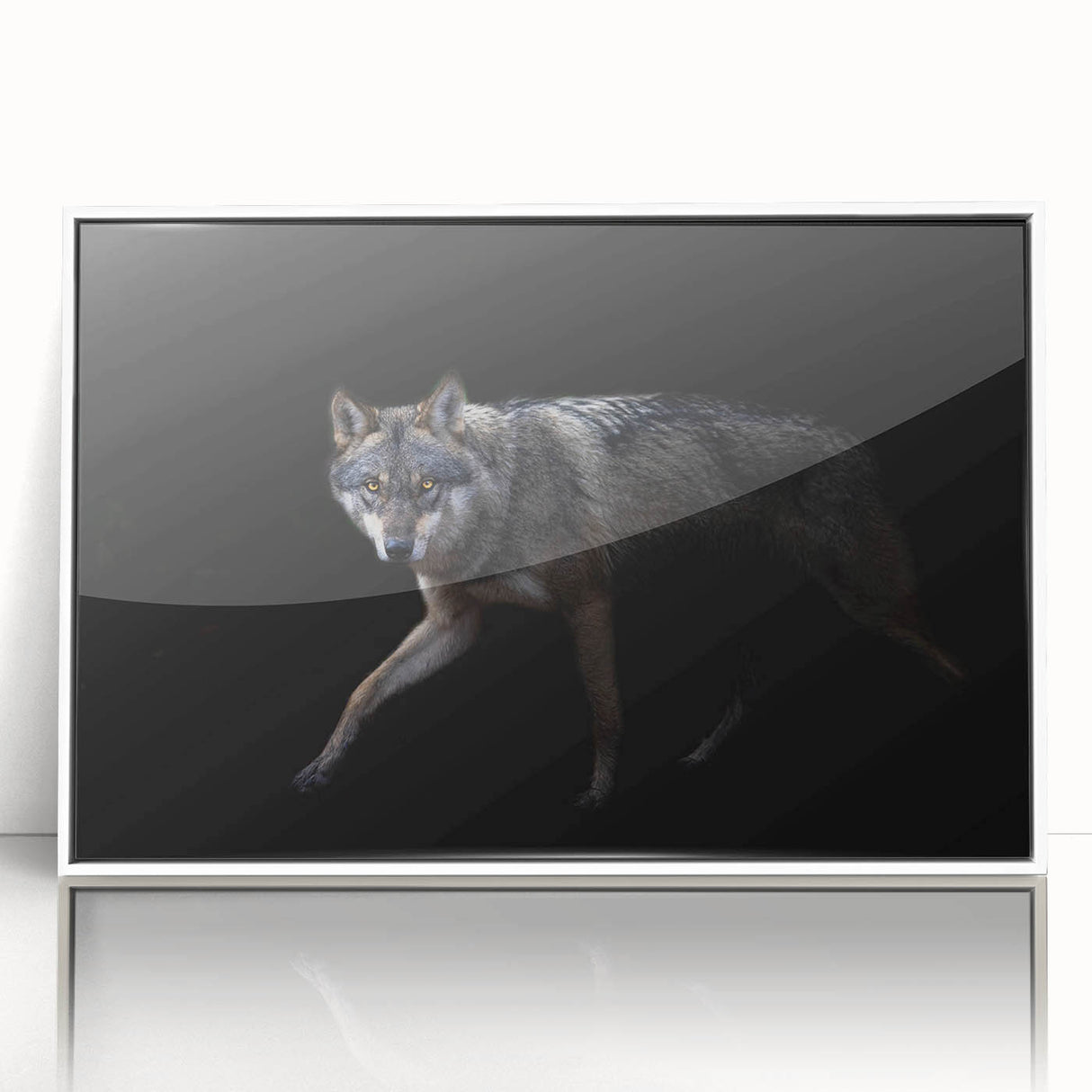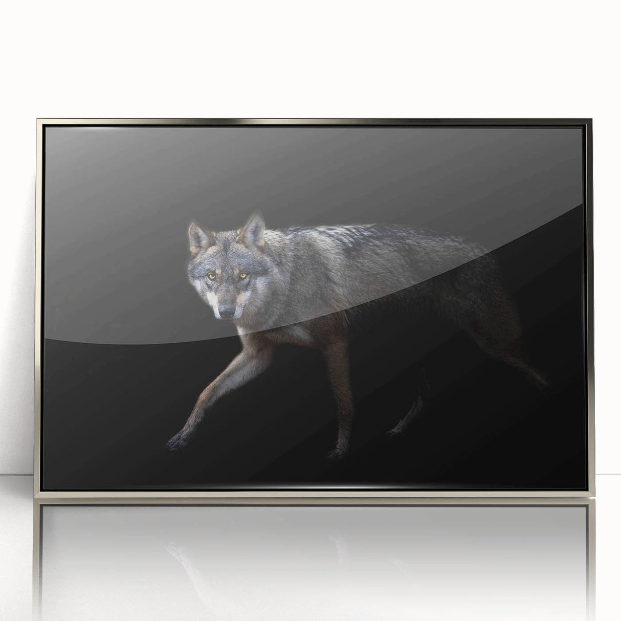 Stealthy Wolf in the Night Art - Dramatic Canvas, Framed, and Acrylic Prints