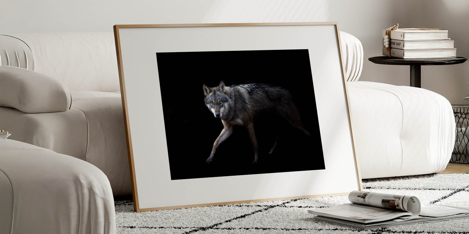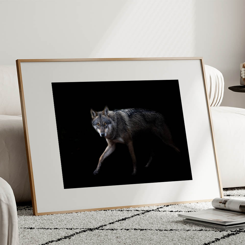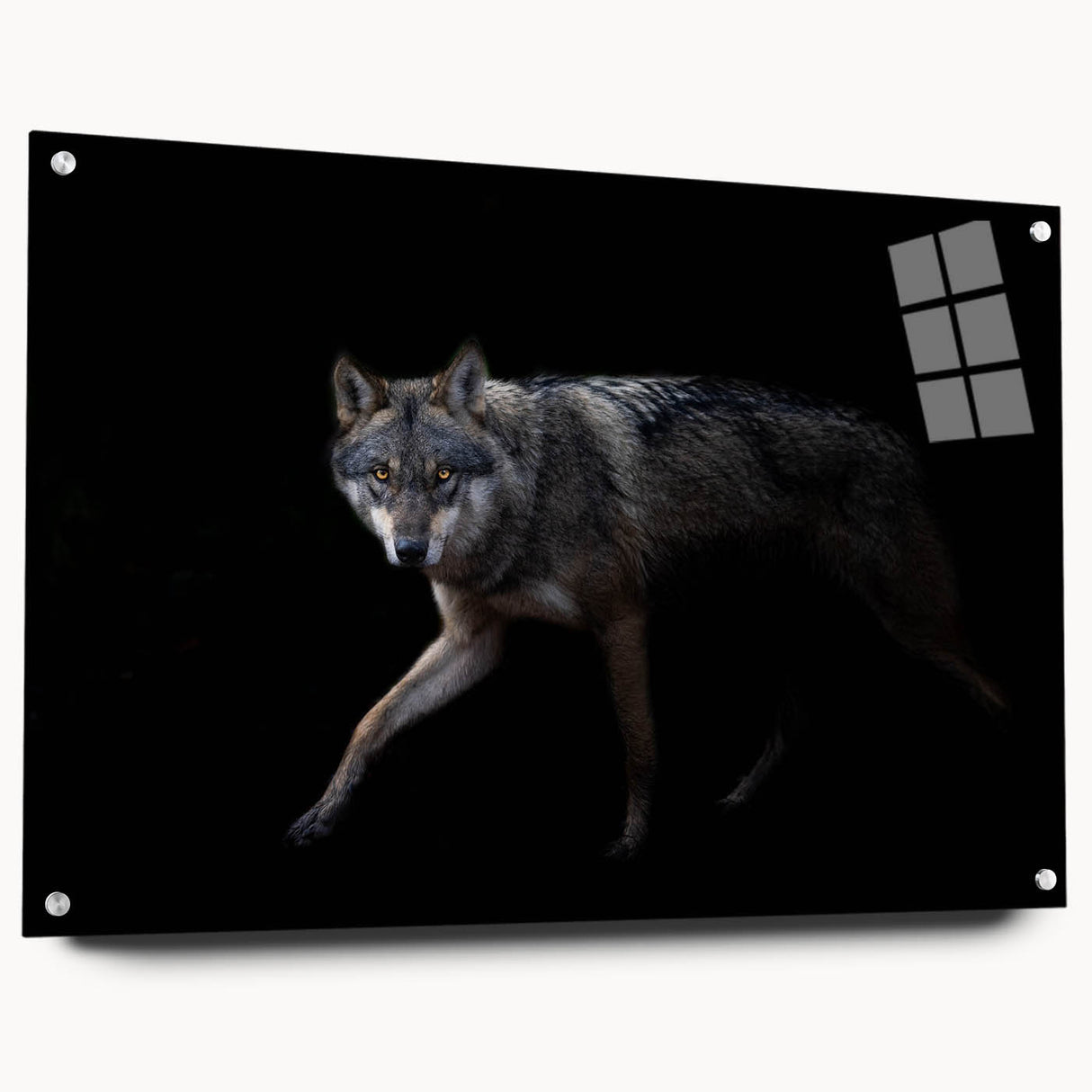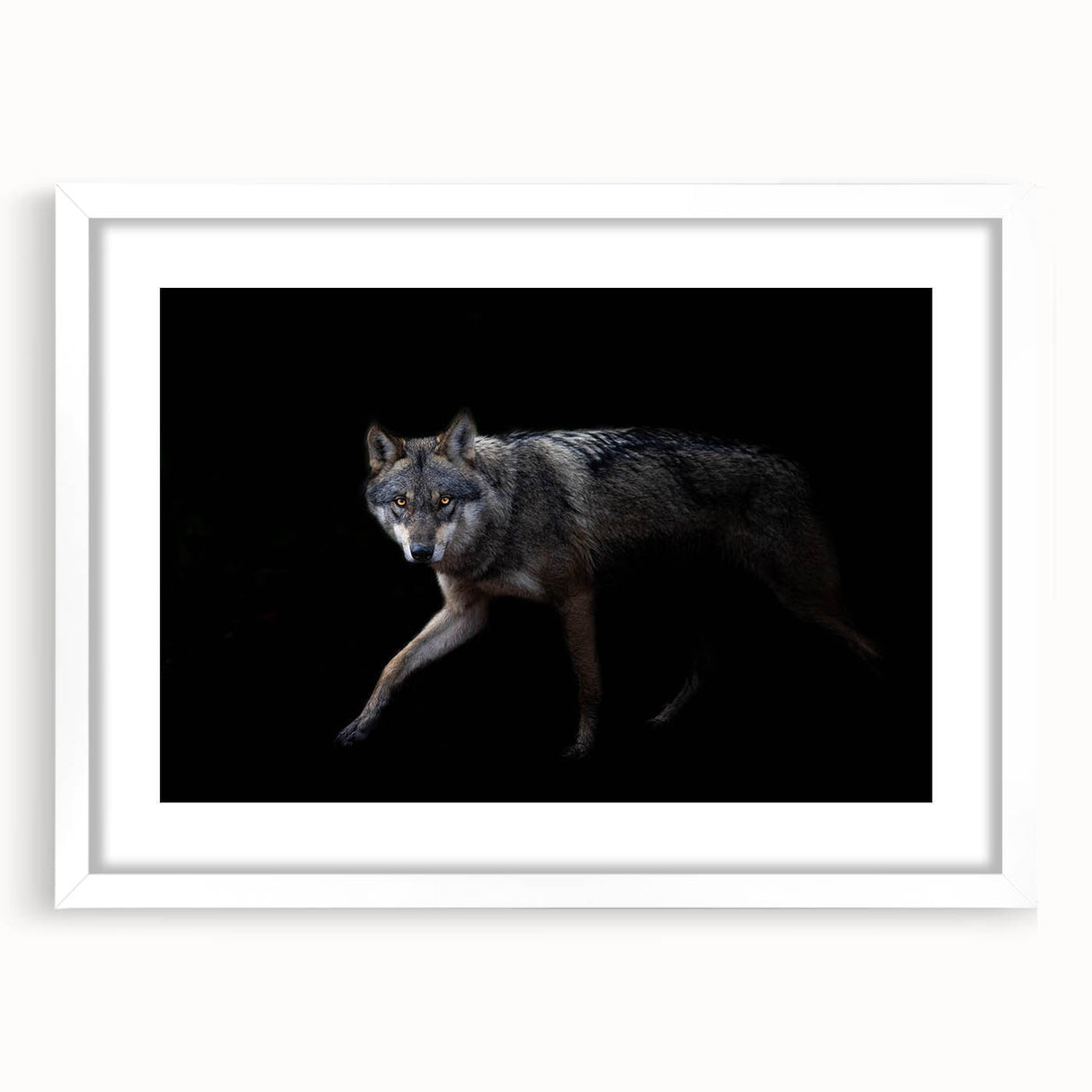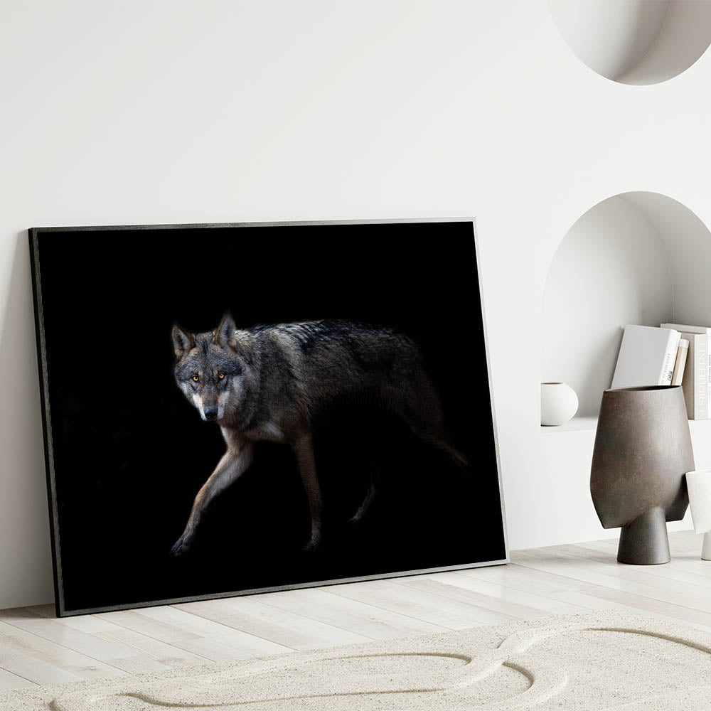 Stealthy Wolf in the Night Art - Dramatic Canvas, Framed, and Acrylic Prints