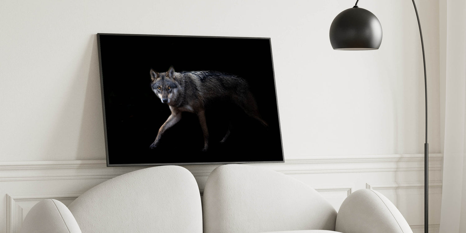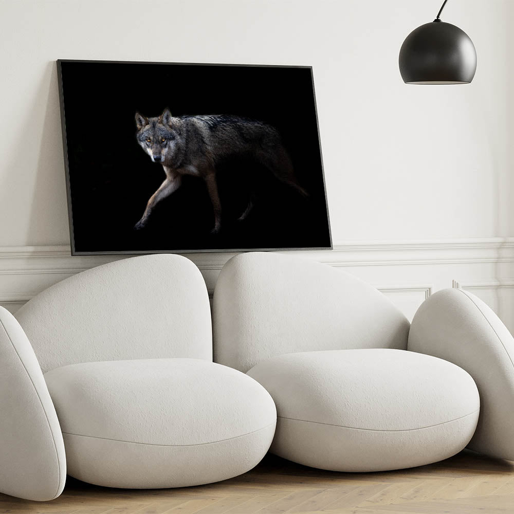 Add a touch of wild elegance to your decor with this stealthy wolf artwork. Its bold and dramatic design will transform any room into a space filled with the enigmatic beauty of the night.