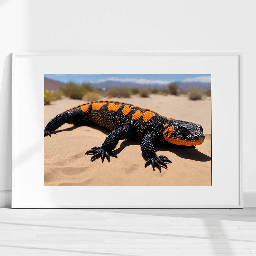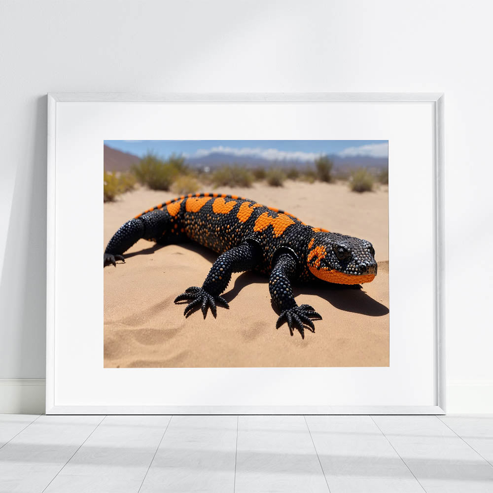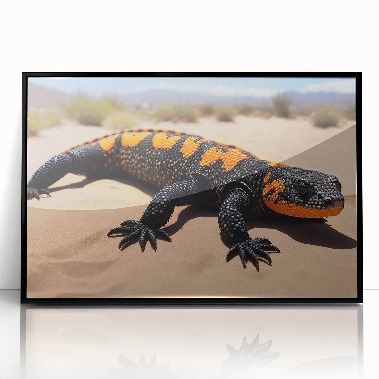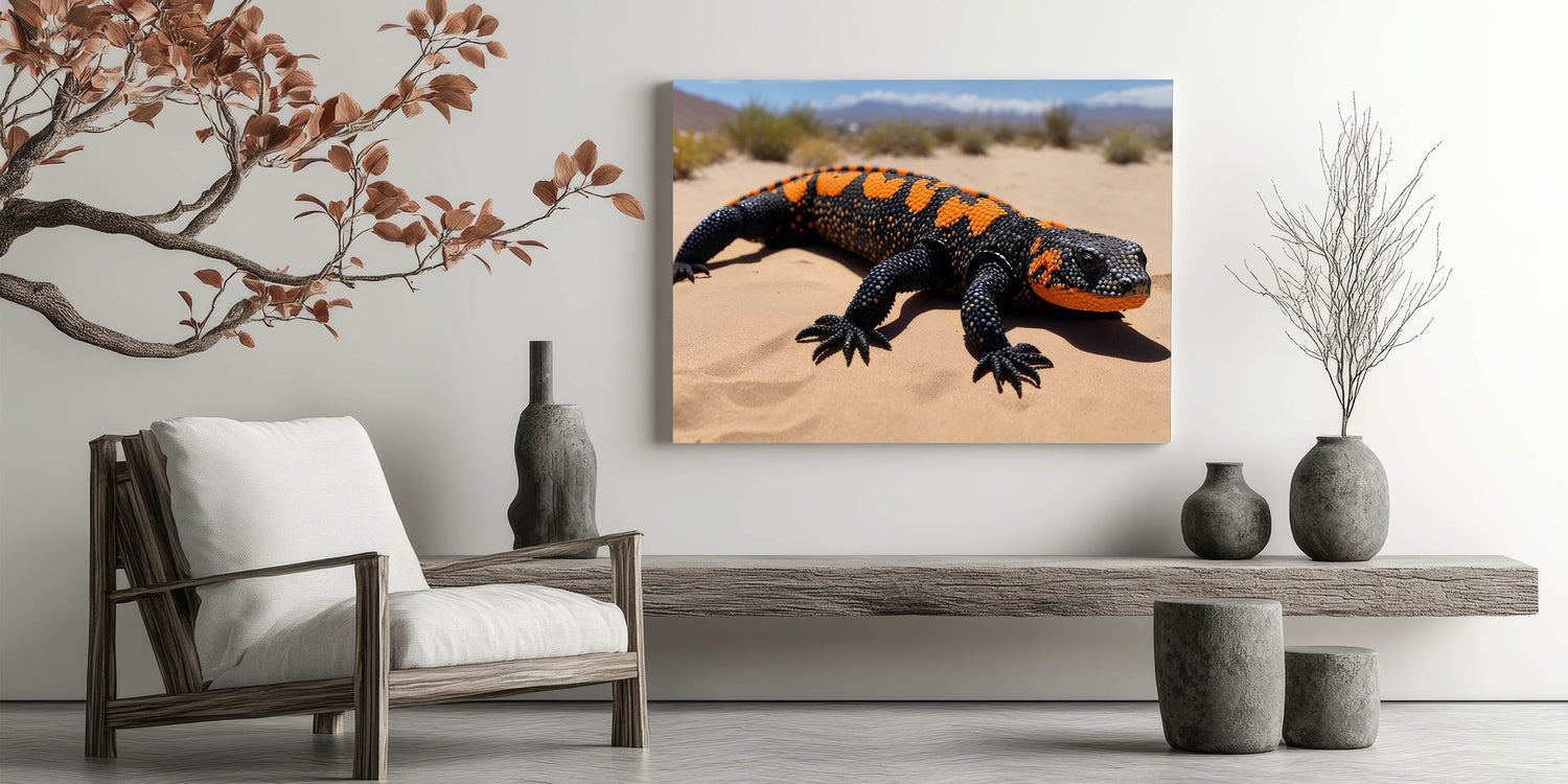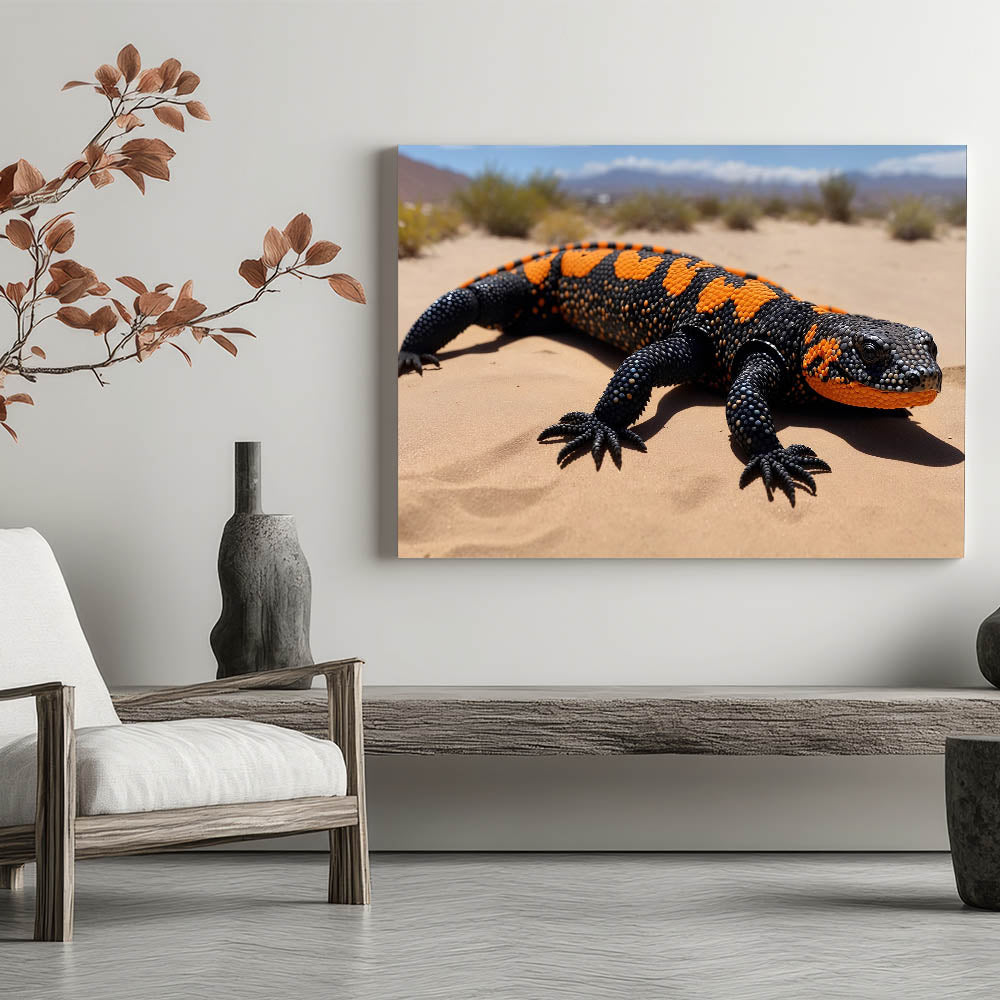 Bring the rugged beauty of the desert into your home with this Striking Lizard Wall Art. This artwork features a bold and captivating lizard with vivid black and orange scales, set against the backdrop of a sunlit desert landscape. The high contrast between the lizard's vibrant colors and the sandy surroundings makes this piece a standout addition to any room, whether it's your living room, office, or bedroom. Available in a variety of formats, including Stretched Canvas, Framed Canvas, Acrylic Glass, Framed Acrylic Glass, Framed Print, Rolled Canvas, and Rolled Print, this artwork is versatile and adaptable to your interior design needs.