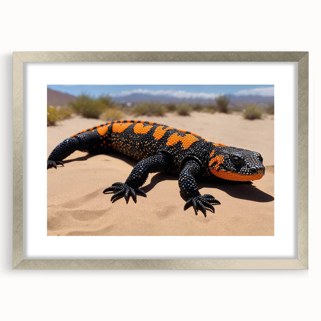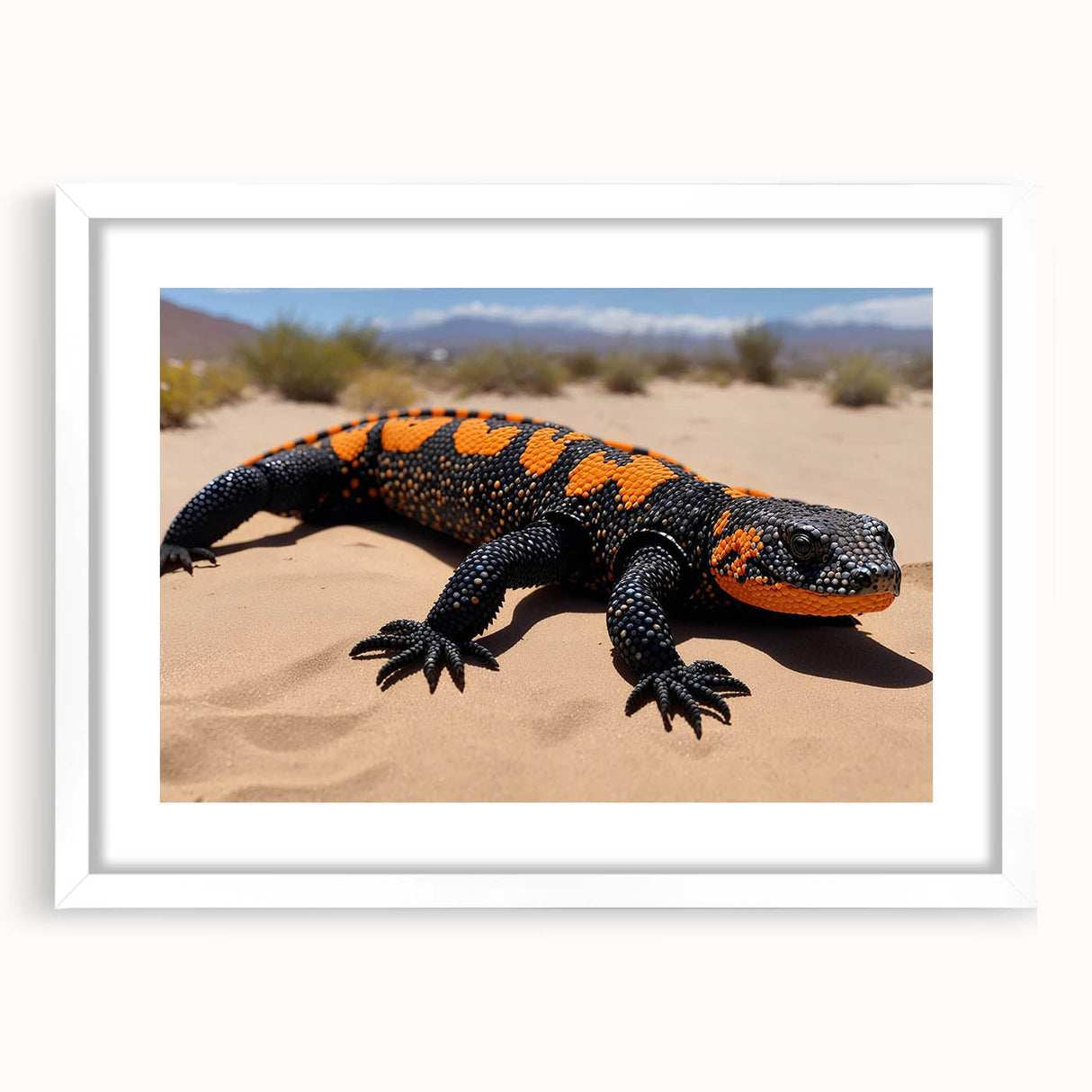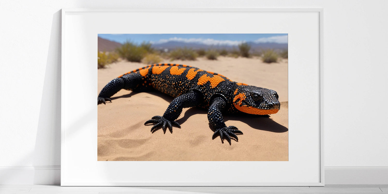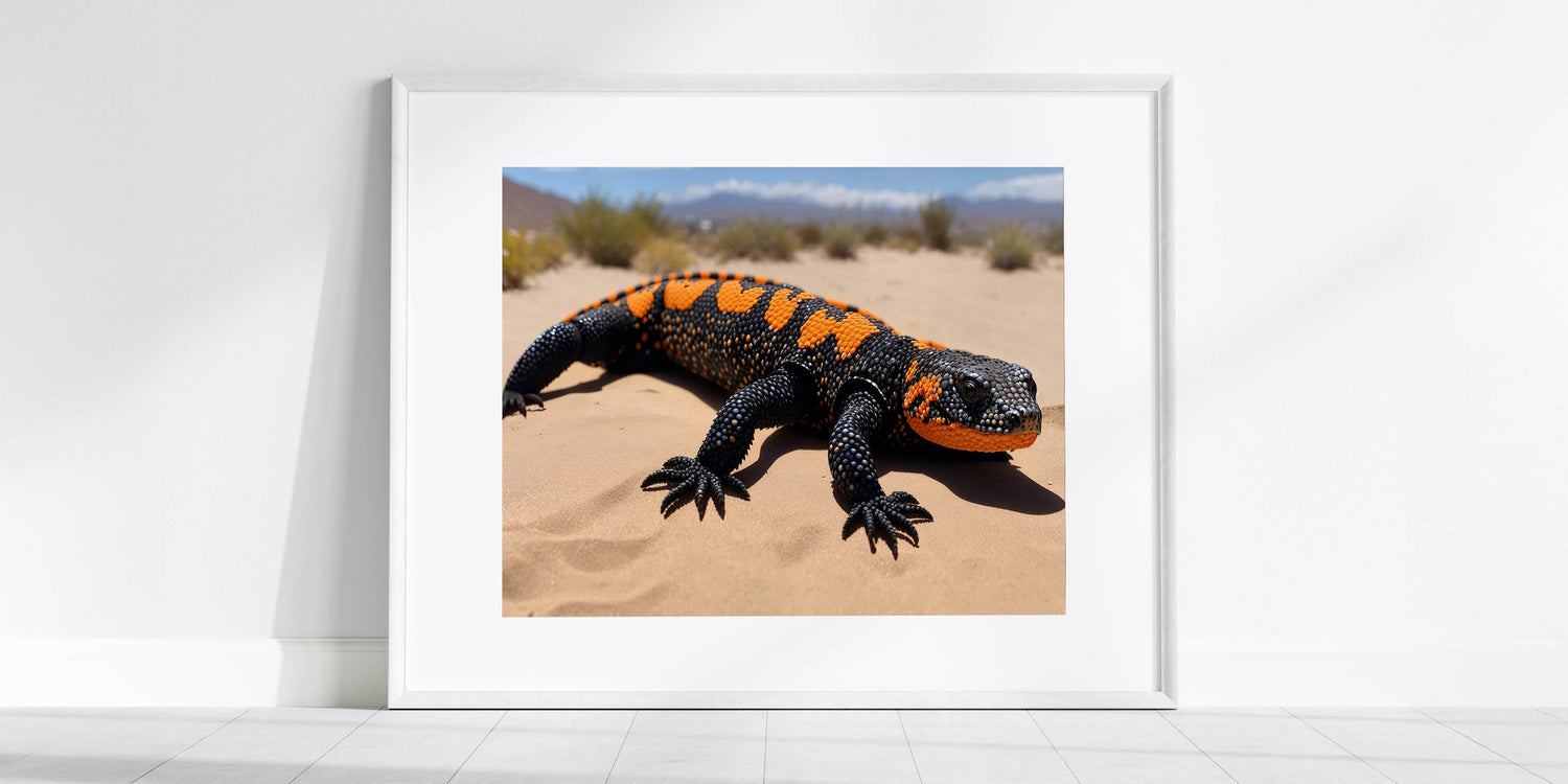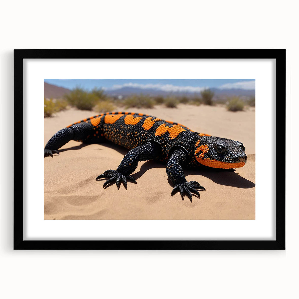 Bring the rugged beauty of the desert into your home with this Striking Lizard Wall Art. This artwork features a bold and captivating lizard with vivid black and orange scales, set against the backdrop of a sunlit desert landscape. The high contrast between the lizard's vibrant colors and the sandy surroundings makes this piece a standout addition to any room, whether it's your living room, office, or bedroom. Available in a variety of formats, including Stretched Canvas, Framed Canvas, Acrylic Glass, Framed Acrylic Glass, Framed Print, Rolled Canvas, and Rolled Print, this artwork is versatile and adaptable to your interior design needs.
