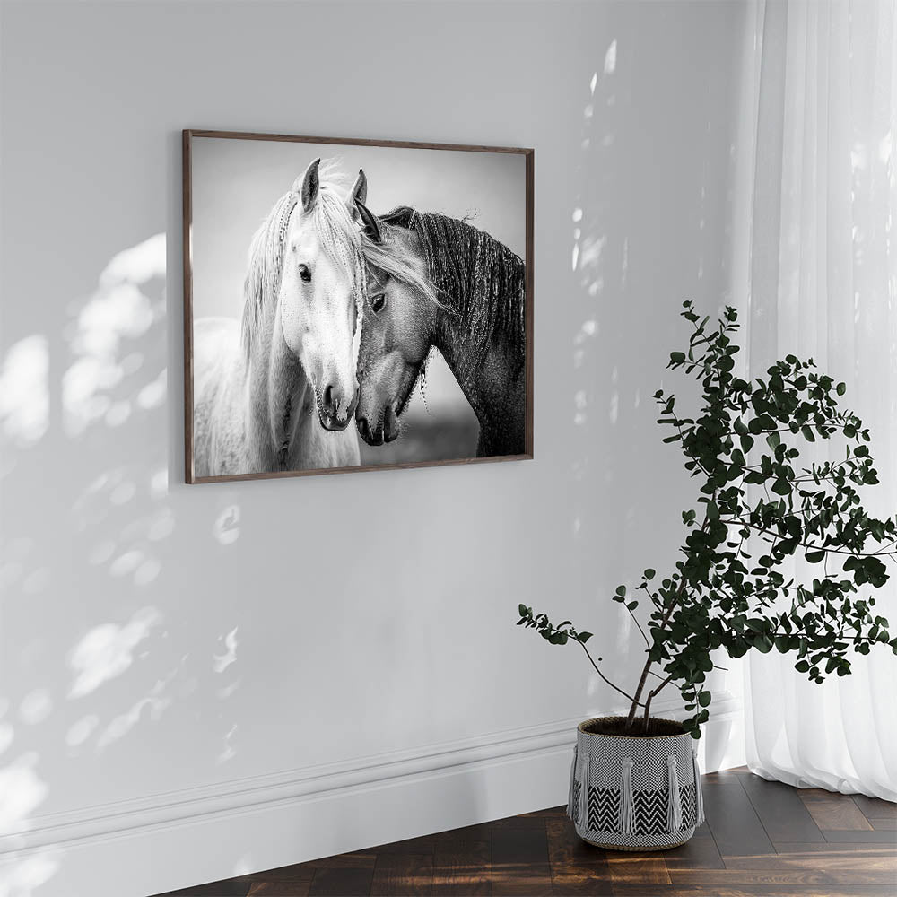Tender Horses in Black and White - Wildlife Photography Wall Art