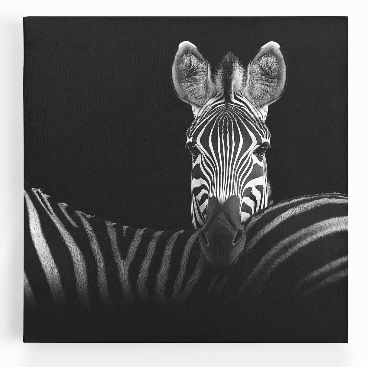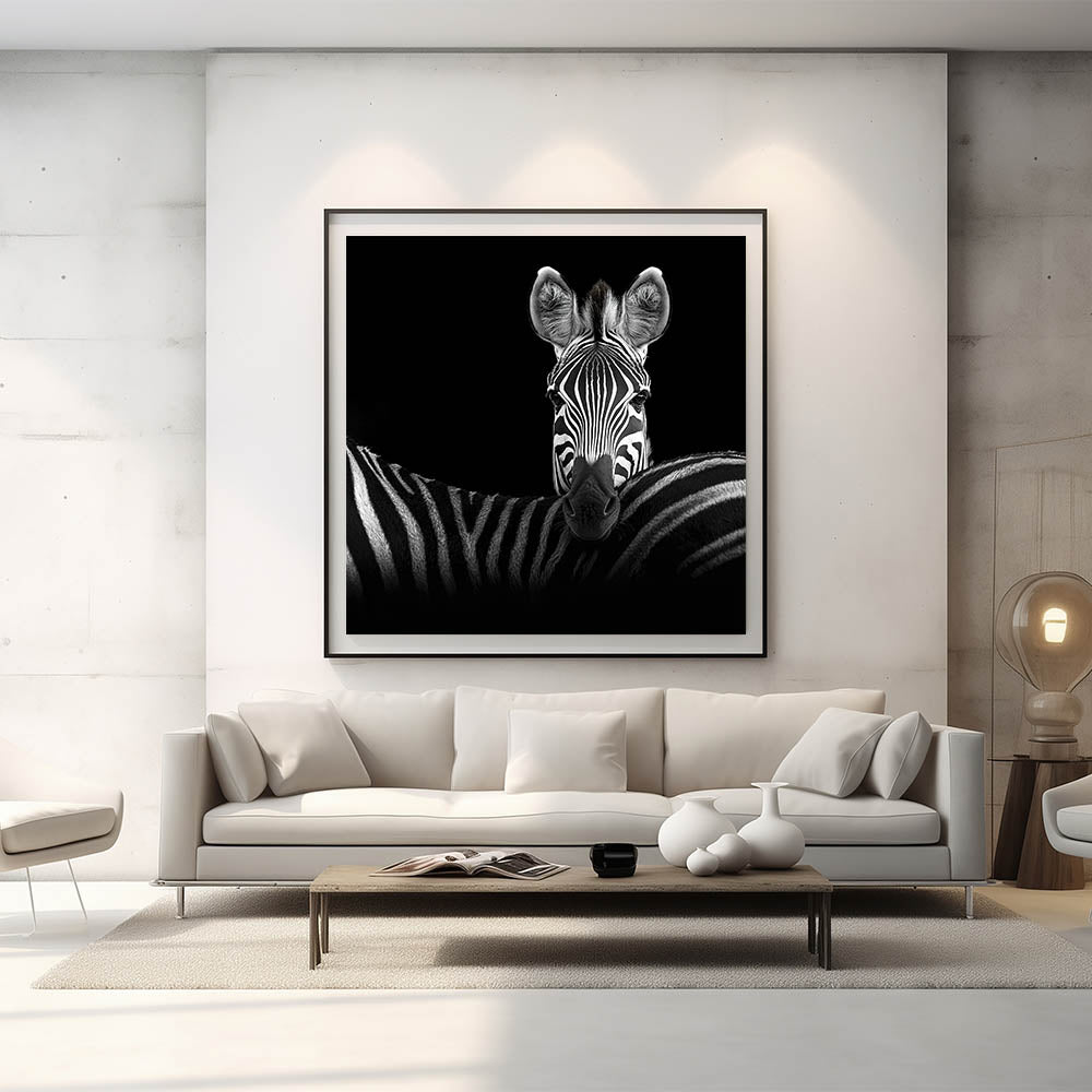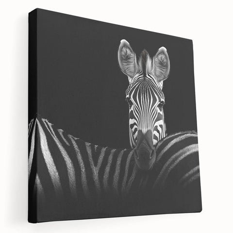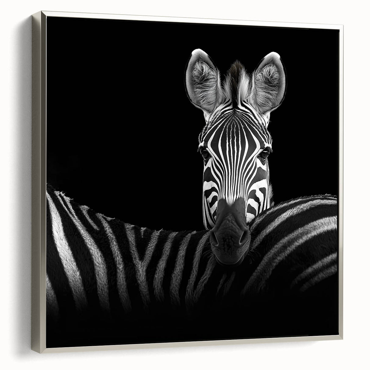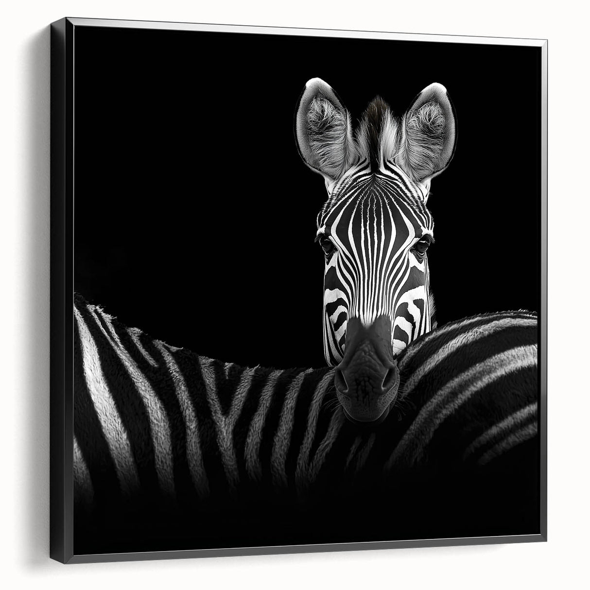 Bring the elegance of the wild into your home with this striking zebra portrait wall art. Captured in stunning black and white, this wildlife photography highlights the intricate patterns of the zebra's stripes and the intensity of its gaze. The dark background creates a dramatic contrast, emphasizing the zebra's natural beauty and adding a bold touch to your decor. Perfect for animal lovers and modern art enthusiasts, this piece offers timeless sophistication.