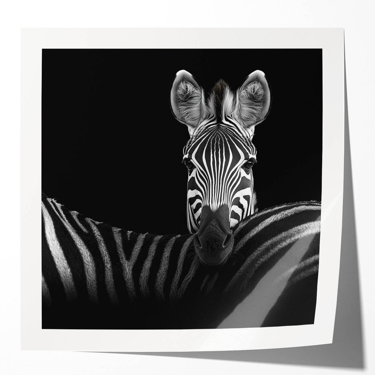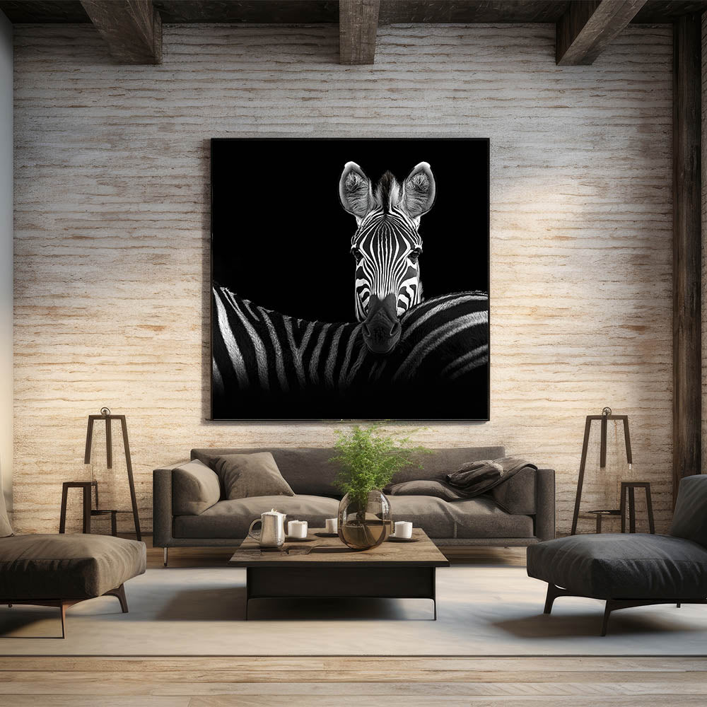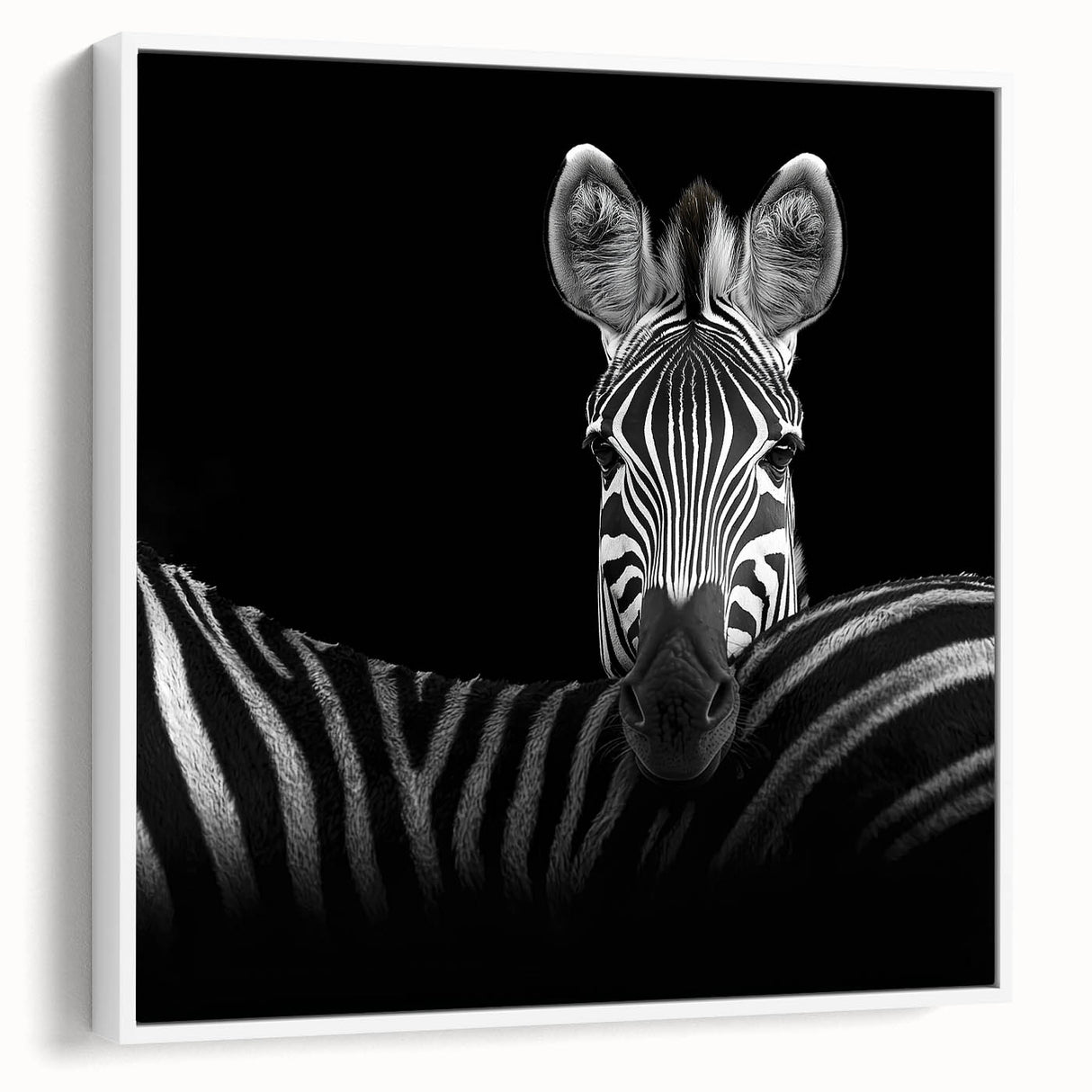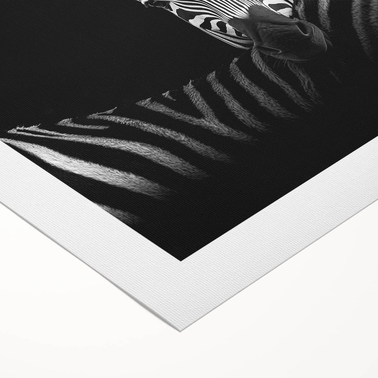 Bring the elegance of the wild into your home with this striking zebra portrait wall art. Captured in stunning black and white, this wildlife photography highlights the intricate patterns of the zebra's stripes and the intensity of its gaze. The dark background creates a dramatic contrast, emphasizing the zebra's natural beauty and adding a bold touch to your decor. Perfect for animal lovers and modern art enthusiasts, this piece offers timeless sophistication.