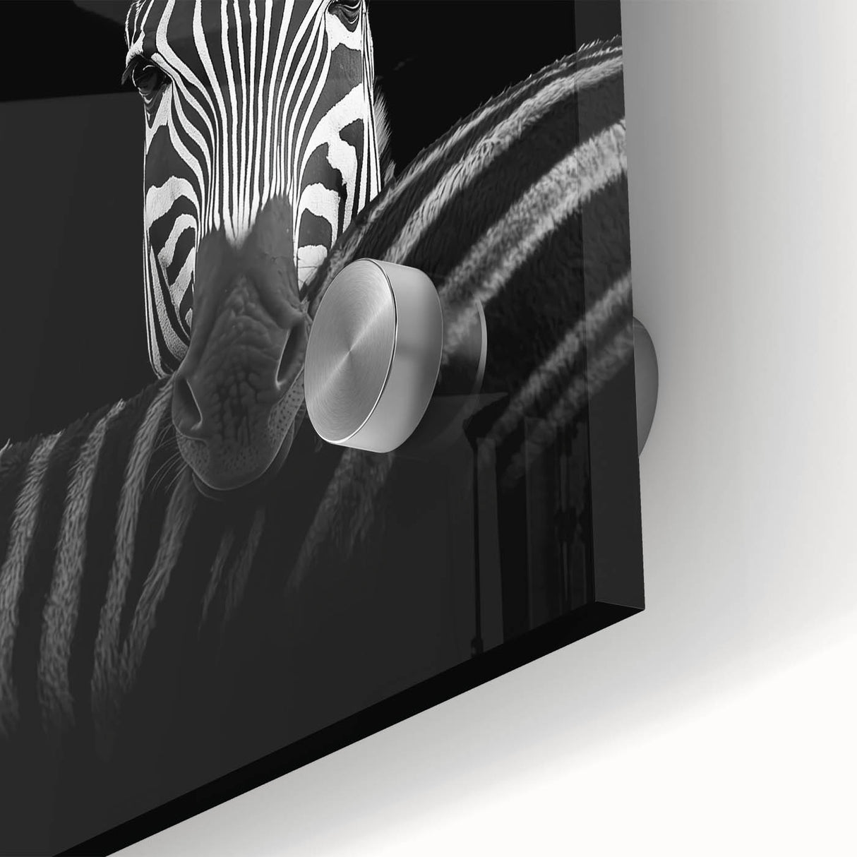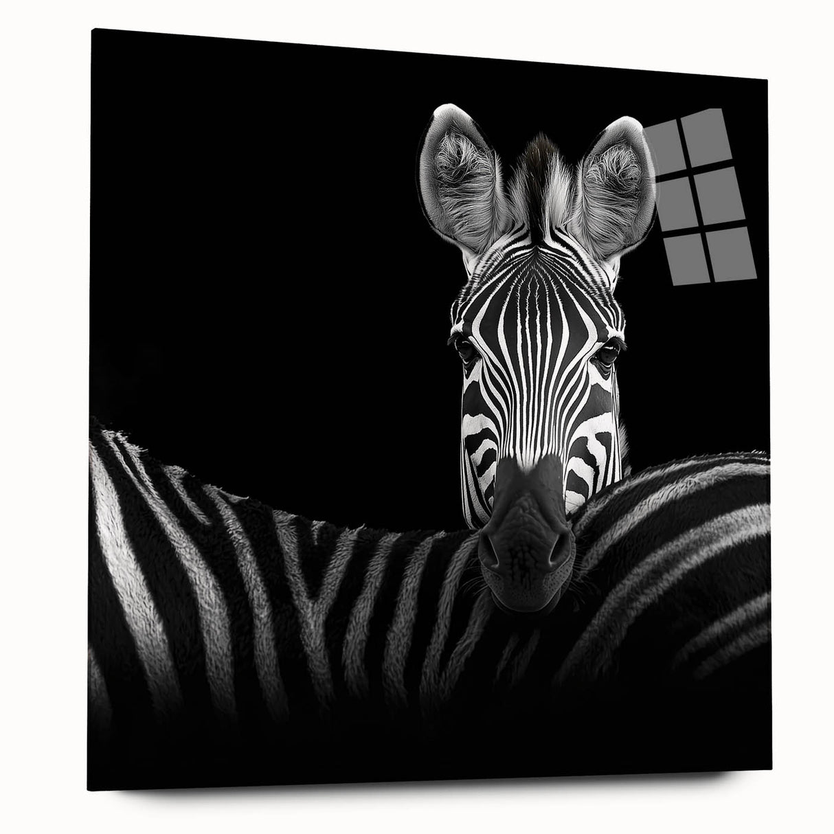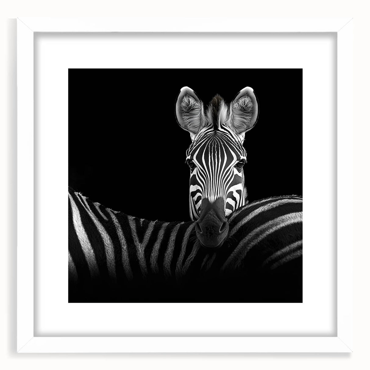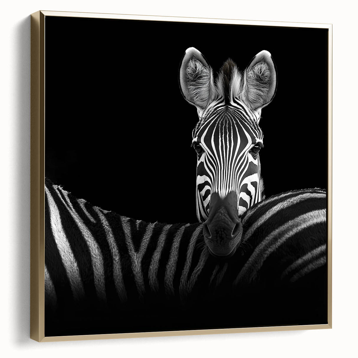 Bring the elegance of the wild into your home with this striking zebra portrait wall art. Captured in stunning black and white, this wildlife photography highlights the intricate patterns of the zebra's stripes and the intensity of its gaze. The dark background creates a dramatic contrast, emphasizing the zebra's natural beauty and adding a bold touch to your decor. Perfect for animal lovers and modern art enthusiasts, this piece offers timeless sophistication.