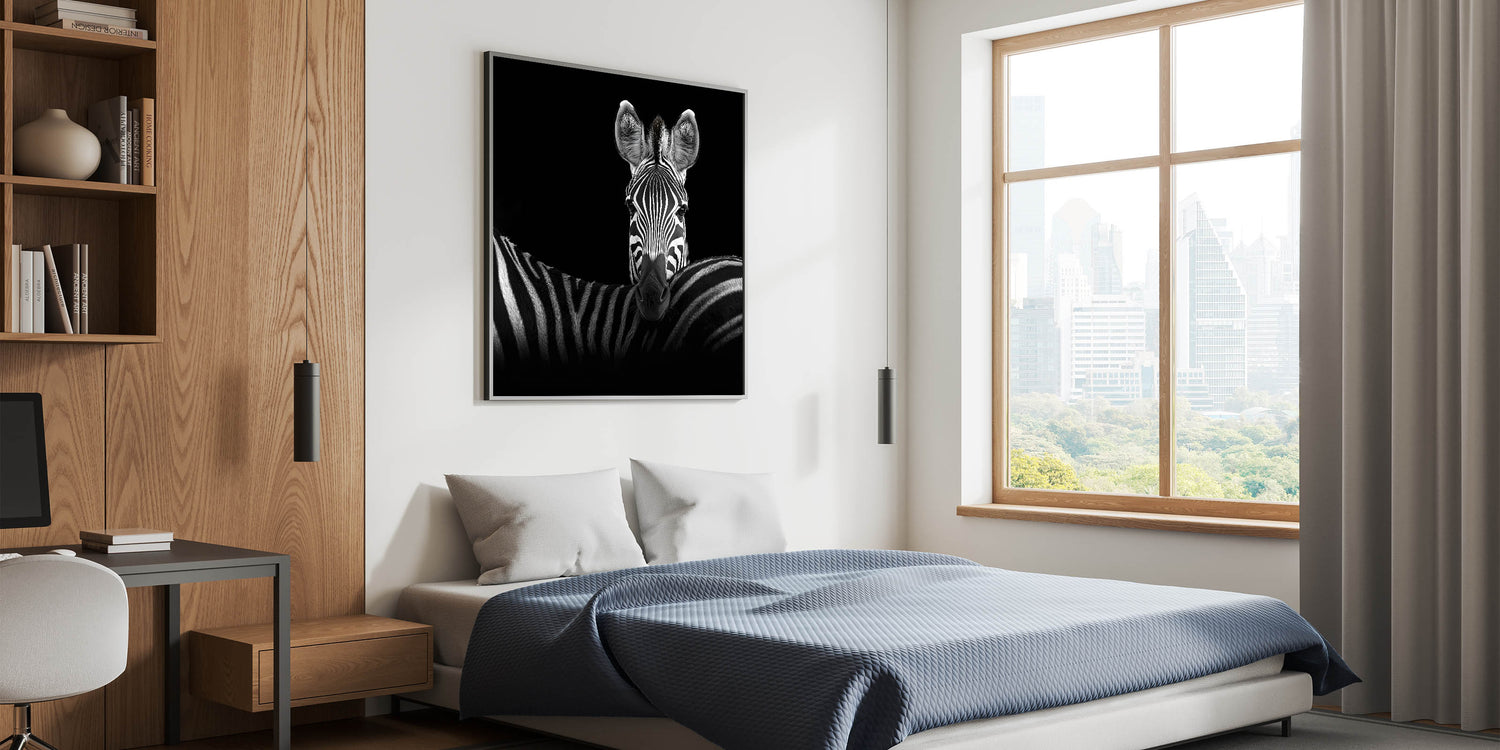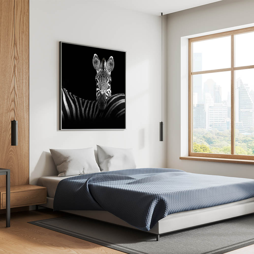 Add a touch of boldness and sophistication to your living room, office, or bedroom with this zebra portrait artwork. The monochromatic palette makes it a versatile choice for modern, minimalist, or contemporary interiors, while its detailed composition creates a stunning focal point. Celebrate the beauty of wildlife with this timeless masterpiece.