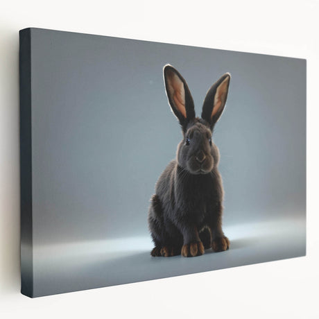 • Side view of a stretched canvas wall art featuring a whimsical rabbit design in vibrant colors, ideal for animal lovers and home decor enthusiasts. This piece adds a playful touch to any room while showcasing artistic flair and creativity.