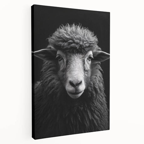 • Stretched canvas wall art featuring a side view of a sheep design, showcasing intricate details and vibrant colors, perfect for animal-themed decor in homes.