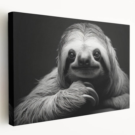 • Sloth-themed wall art on stretched canvas showcasing a vivid design with intricate details, perfect for animal lovers and home decor enthusiasts.