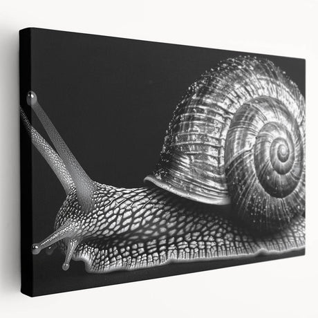 • Stretched canvas wall art showcasing a vibrant snail design, featuring intricate details and colors, perfect for adding a whimsical touch to home decor.