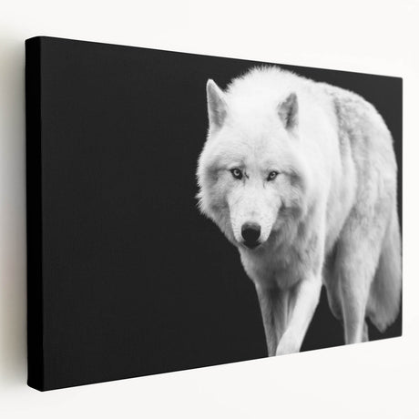 • Stretched canvas wall art featuring a striking wolf design in a natural setting, showcasing detailed fur texture and vibrant colors, perfect for wildlife enthusiasts.