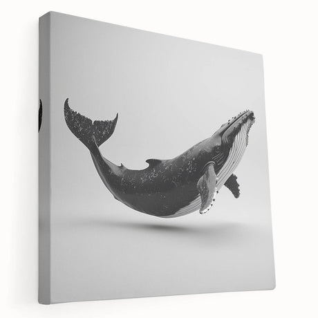 • Stretched canvas wall art featuring a detailed side view of a majestic whale, showcasing vibrant marine colors and intricate textures, perfect for ocean-themed decor.
