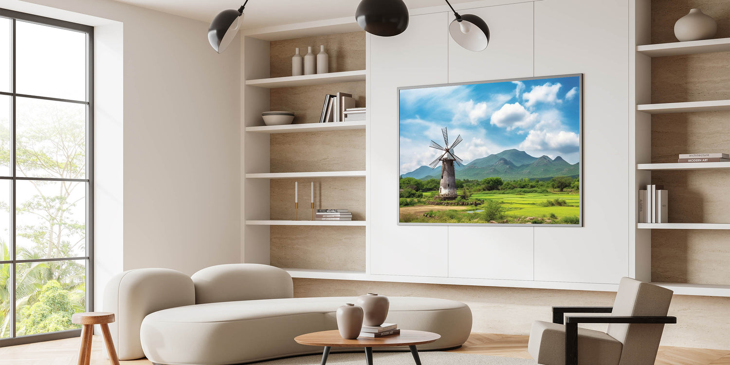 • Scenic Design: The combination of the rustic windmill and the lush green landscape creates a captivating focal point that draws the eye.