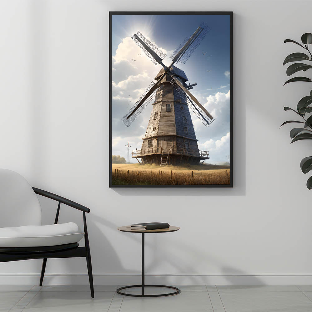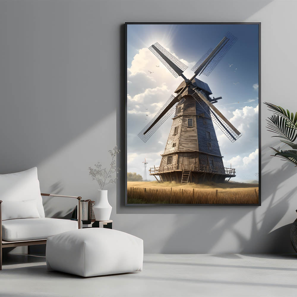 - Detailed and Realistic Design: The artwork captures the intricate details of the wooden windmill, from the weathered wood to the delicate blades, offering a lifelike visual experience.