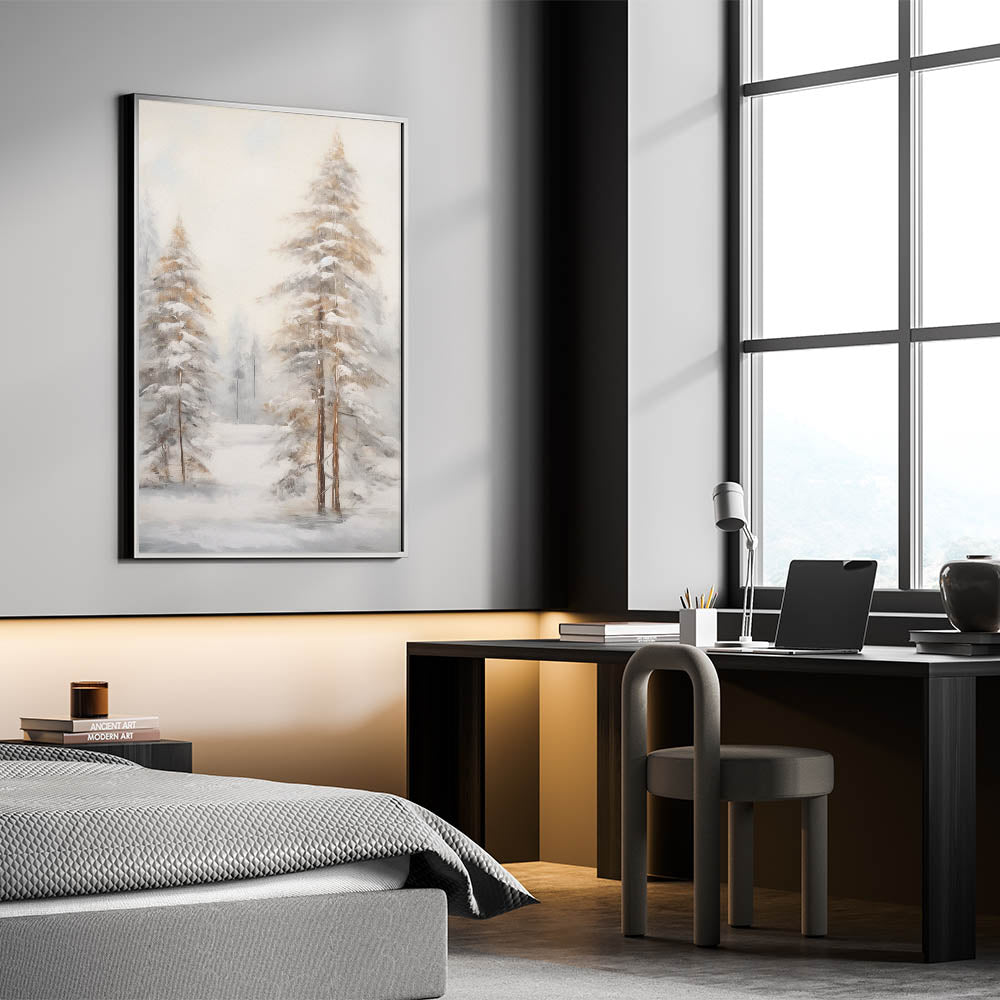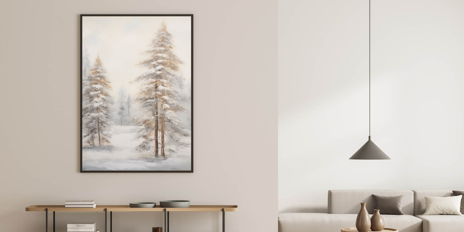 This Winter Wonderland Wall Art brings warmth and serenity to your space, blending the crispness of winter with soft golden tones. Whether displayed alone or as part of a gallery wall, this piece evokes a sense of seasonal tranquility, making it a timeless addition to any home.