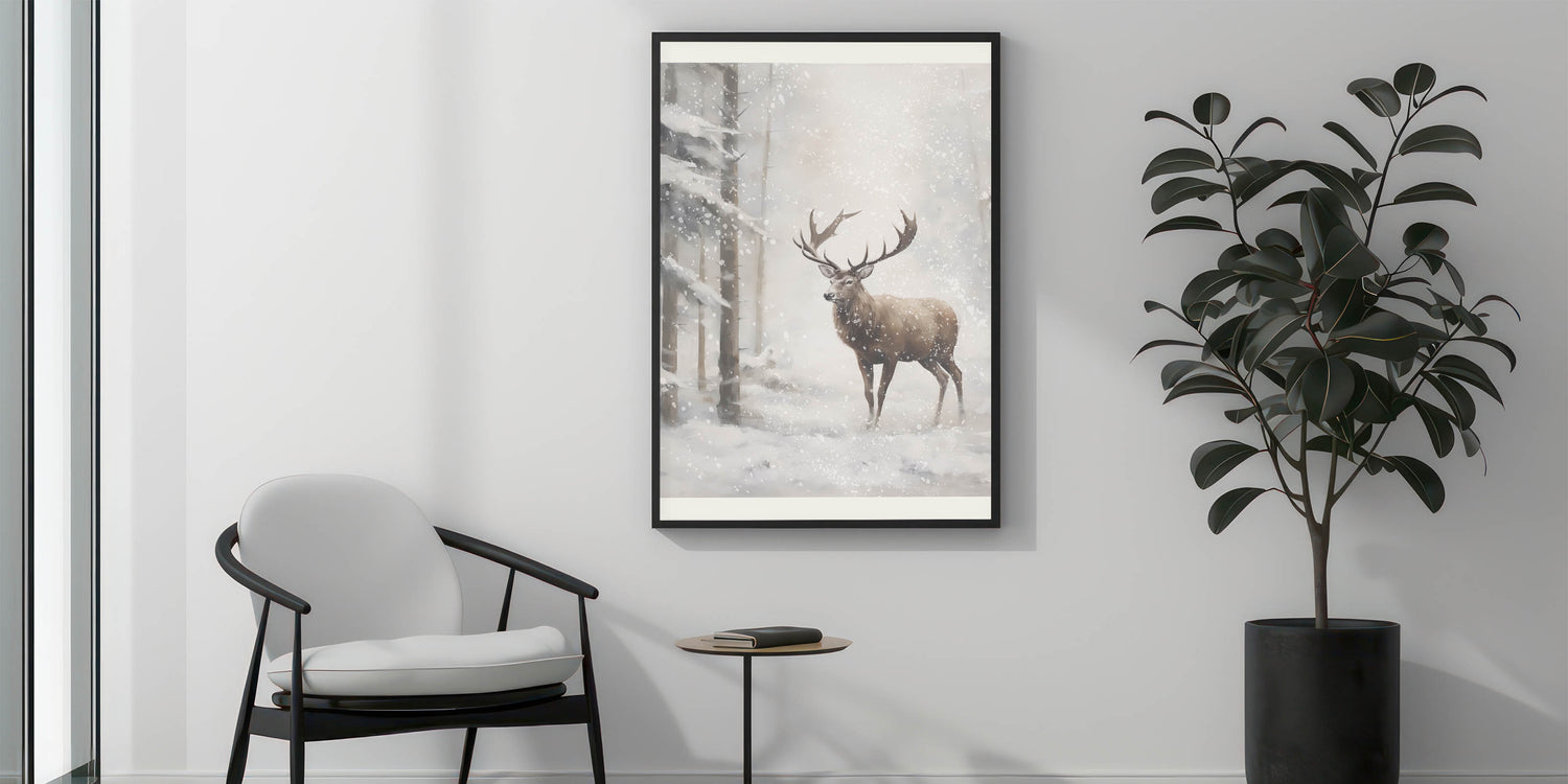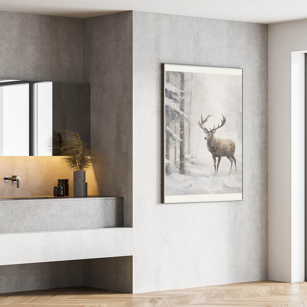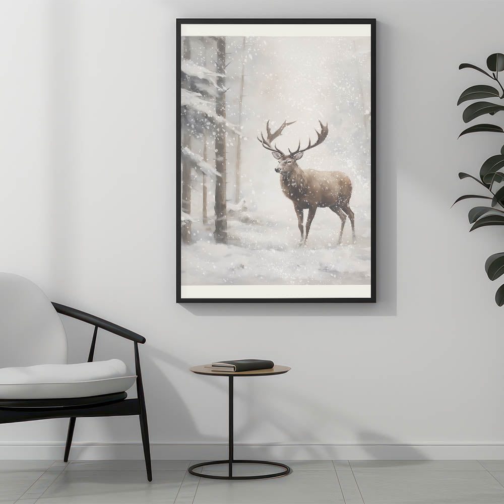 Majestic Winter Deer Wall Art – Snowy Forest Canvas Print