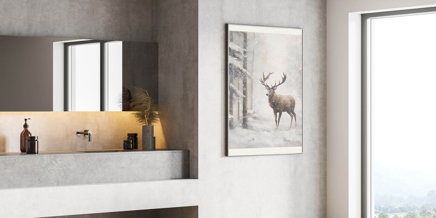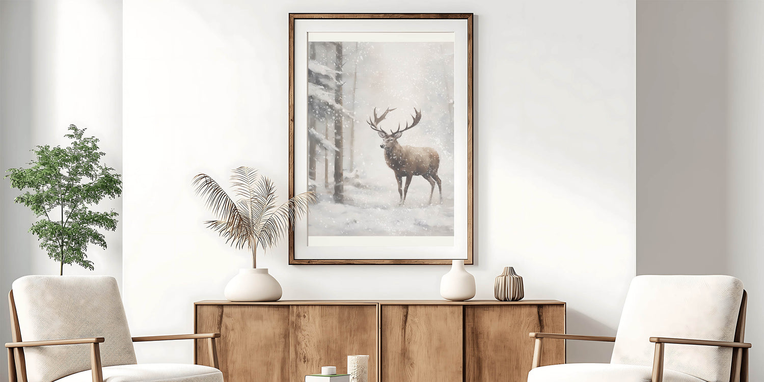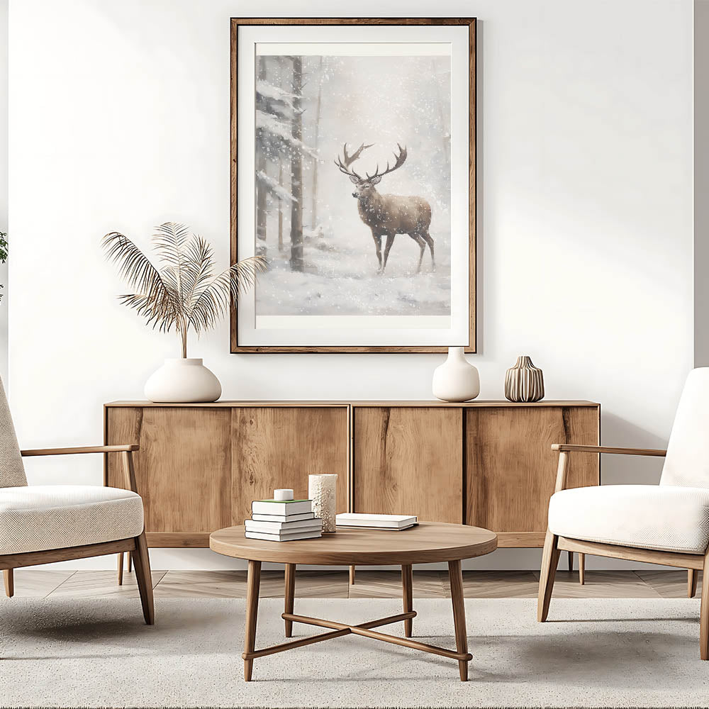 Create a cozy and inviting atmosphere with this Snowy Landscape Wall Art, perfect for those who appreciate both the beauty of winter and the grace of wildlife. Whether displayed as a Framed Print or a Canvas Art Piece, this artwork adds a peaceful, nature-inspired touch to your home.