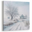 Winter Cottage Scene Wall Art - Snowy Path with Frosted Tree Canvas