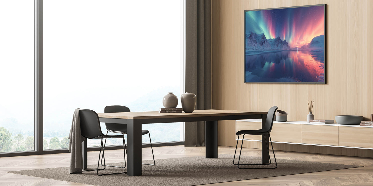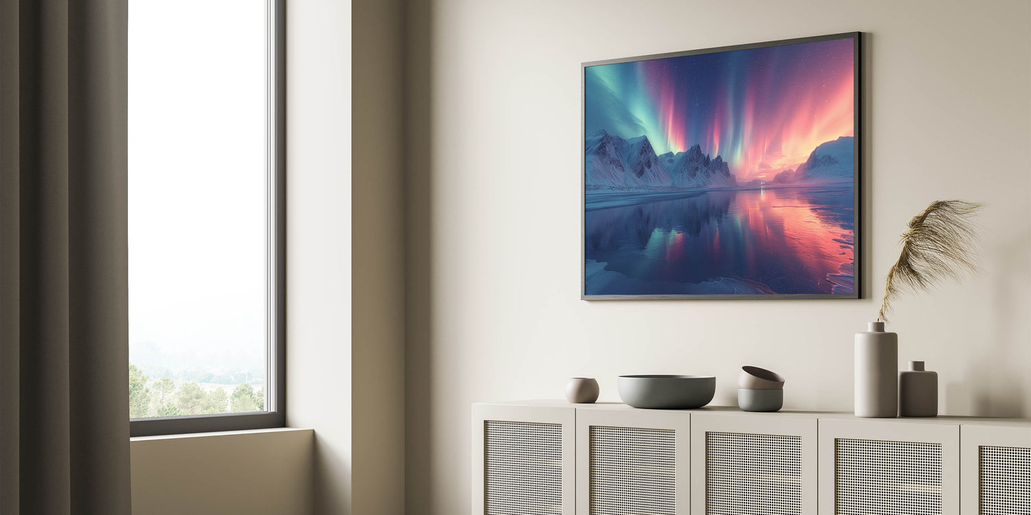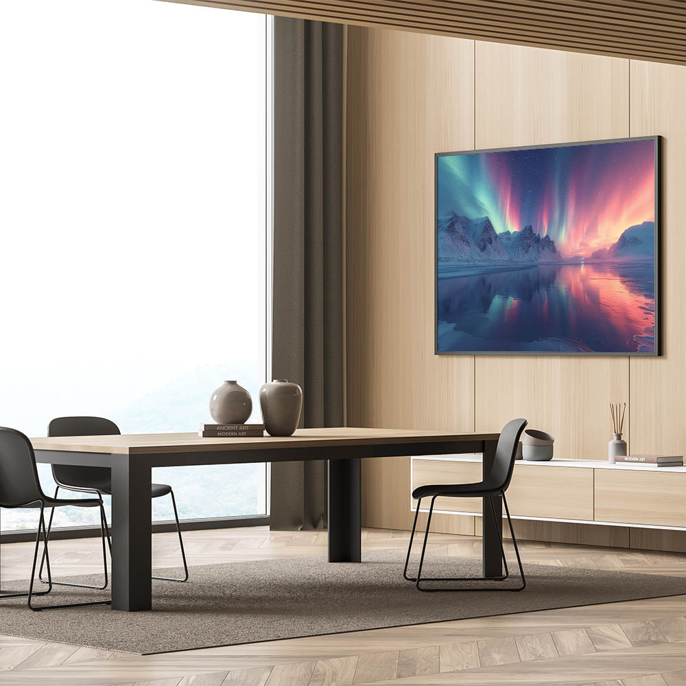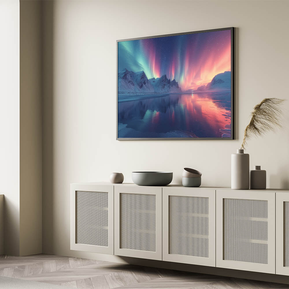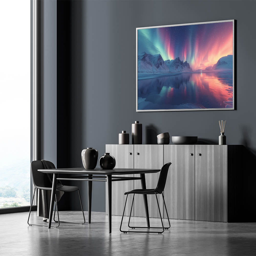This aurora borealis wall art is ideal for creating a calming and mystical atmosphere in any room. Whether for your living room, office, or bedroom, this celestial-inspired piece will transform your space with its vibrant hues and serene composition.