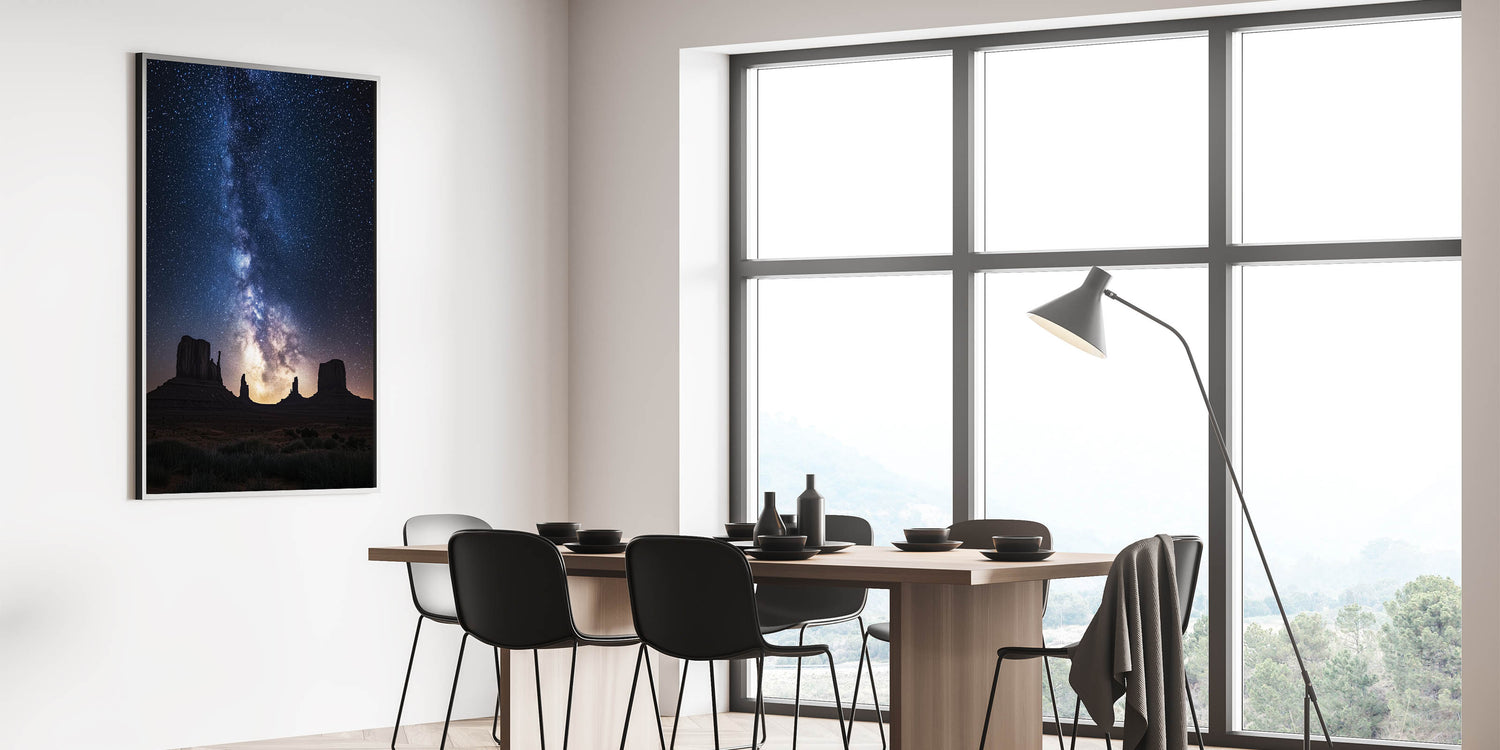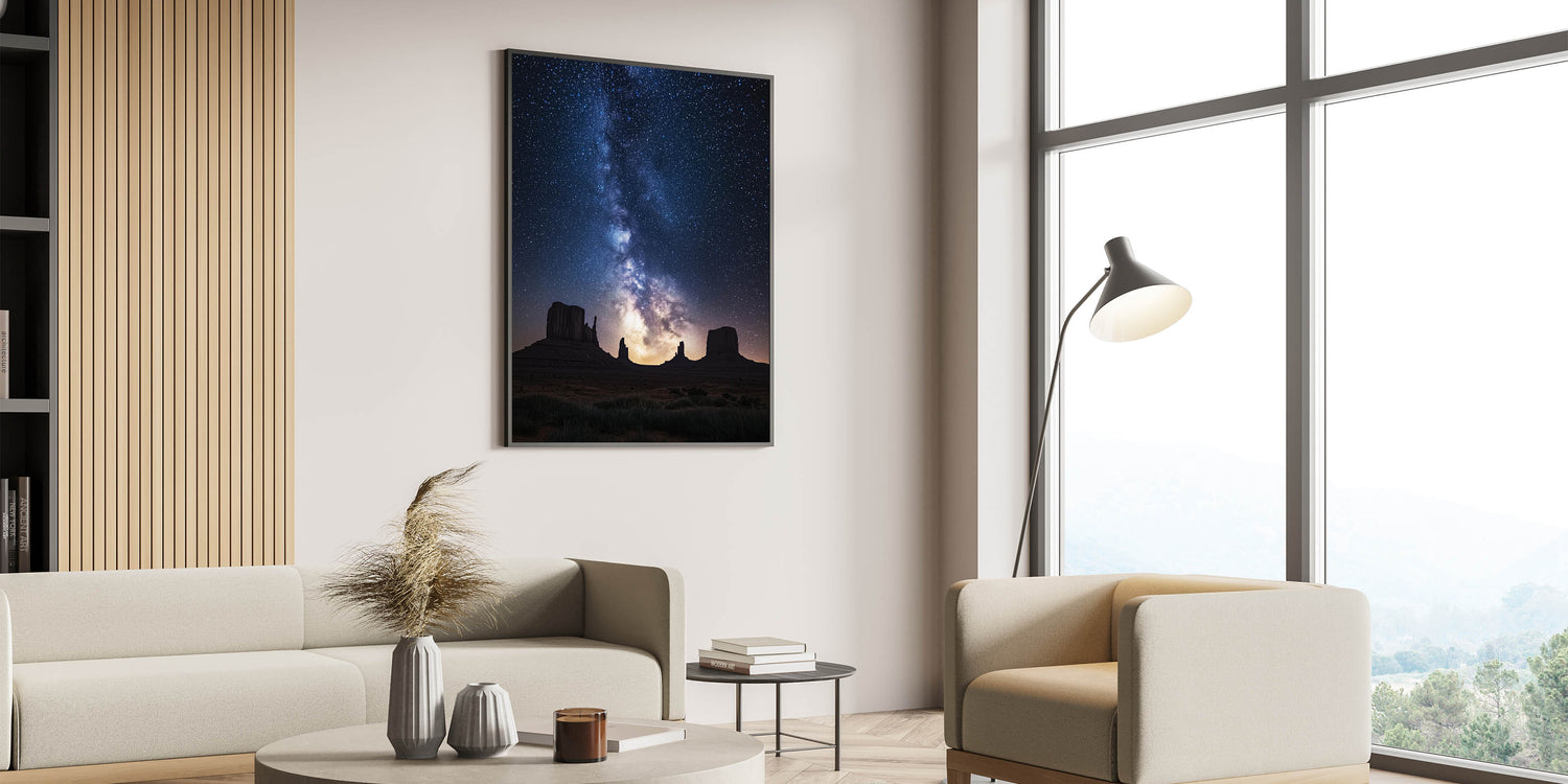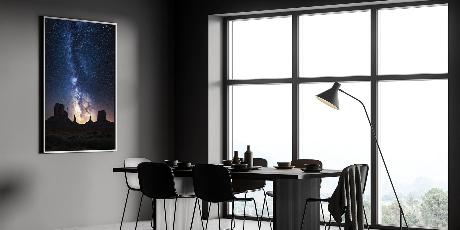 Step into the serene beauty of a desert night with this captivating Arizona desert landscape photography. Showcasing the majestic Milky Way above iconic rock formations, this piece embodies the magic of the cosmos and the rugged charm of the desert. Perfect for creating a peaceful, awe-inspiring atmosphere, it’s a timeless addition to any space.