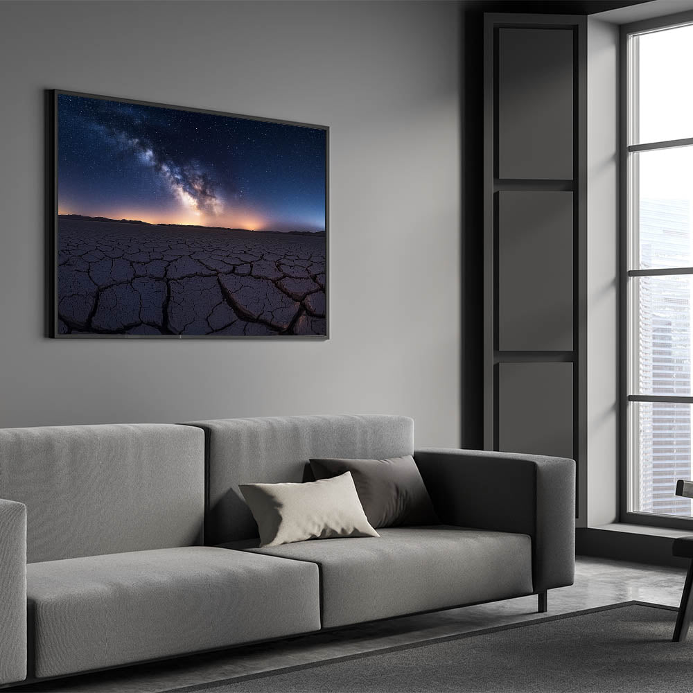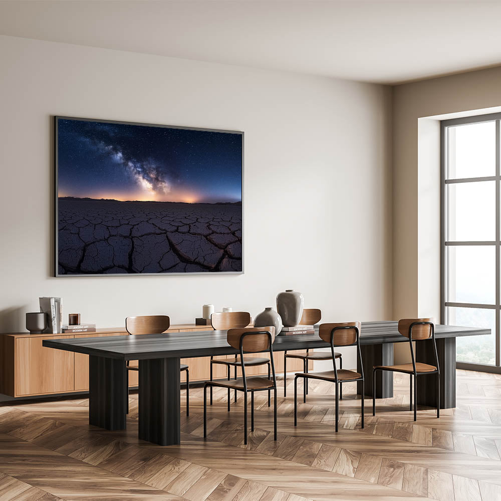- Exquisite Details: Captures the vast beauty of the desert under a spectacular night sky, showcasing intricate cracks on the earth's surface.