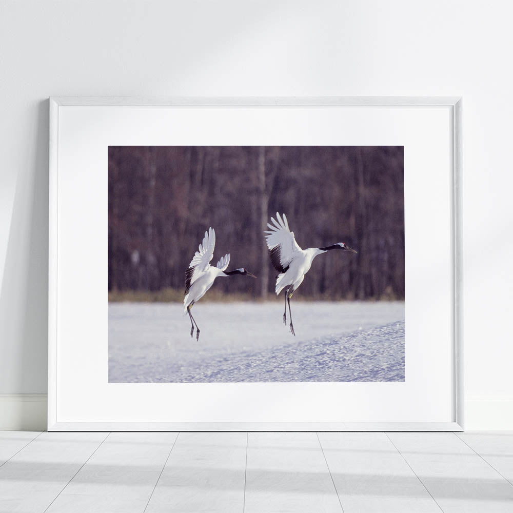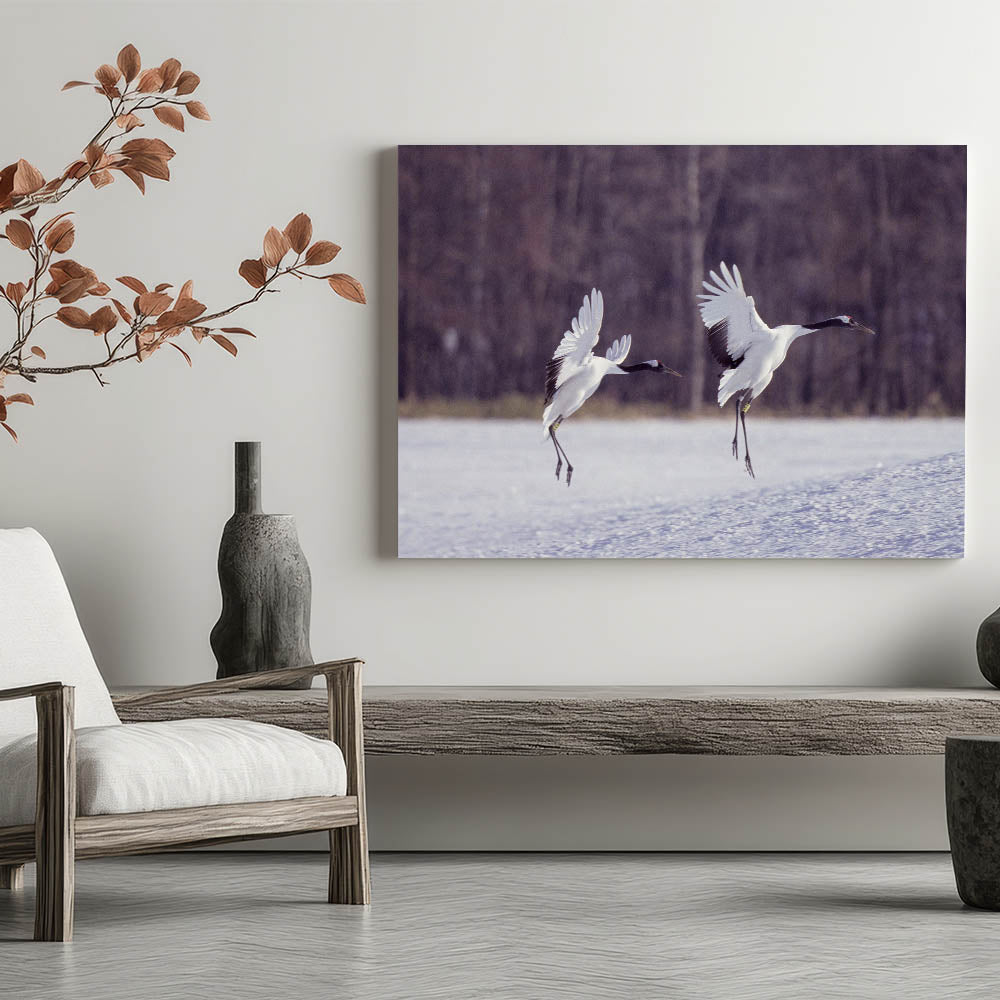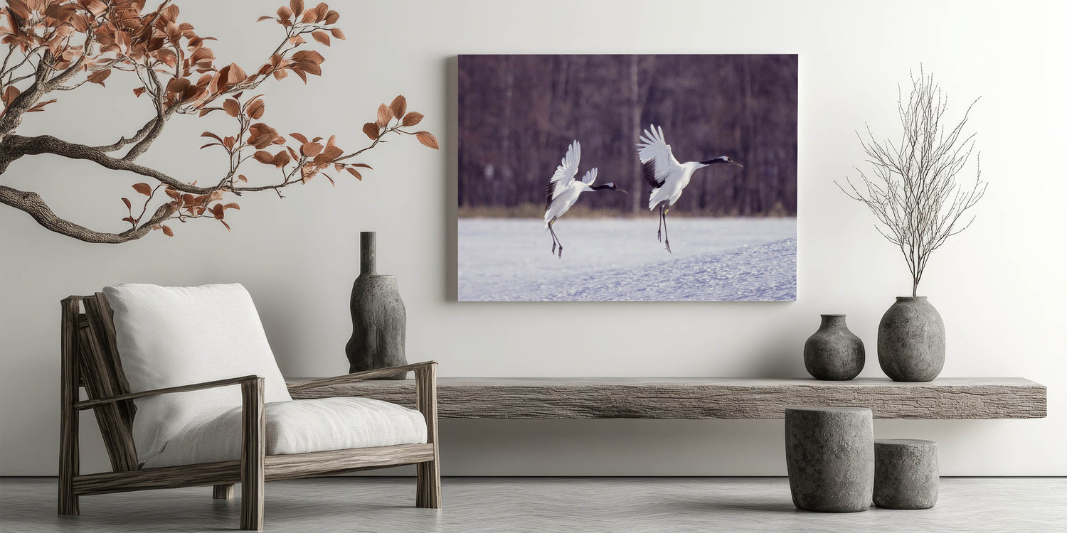 • High-Quality Printing: The fine details of the cranes and the subtle winter landscape are meticulously captured, ensuring a stunning finish across all material options.