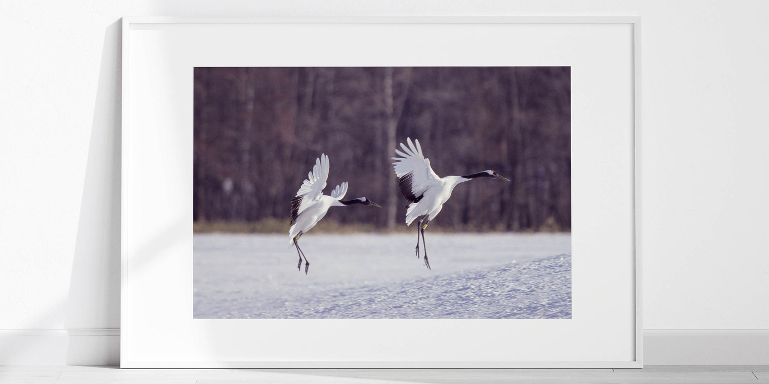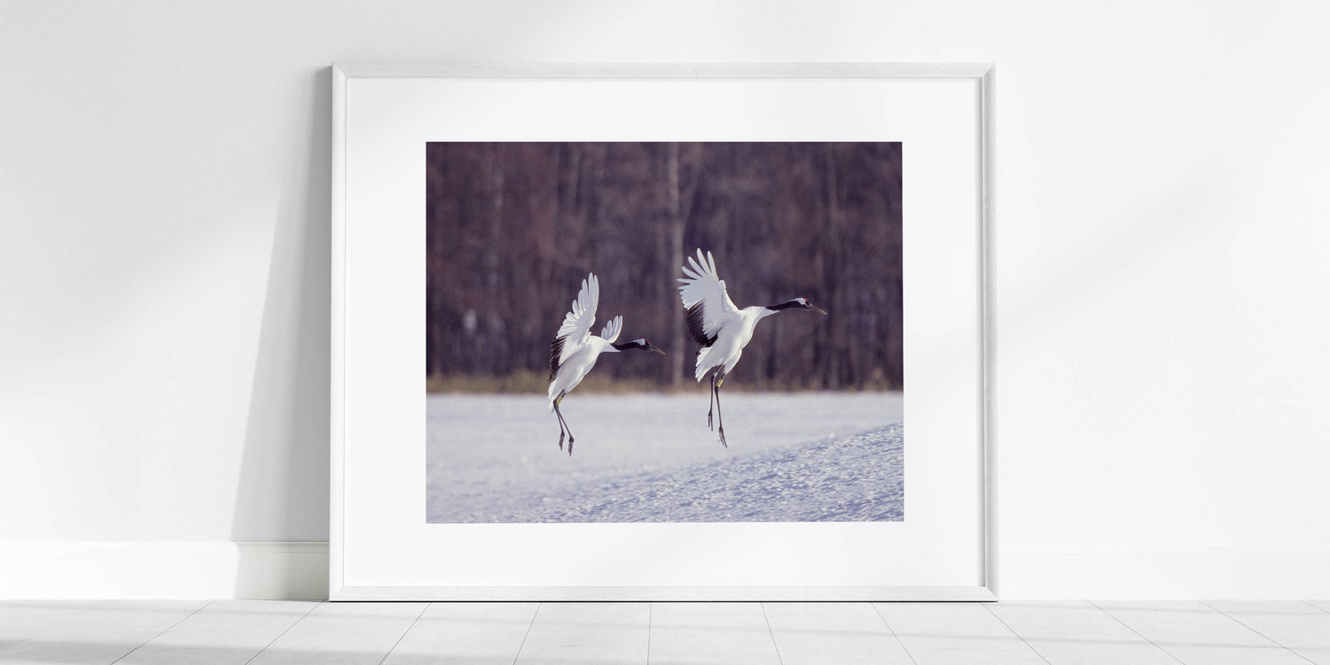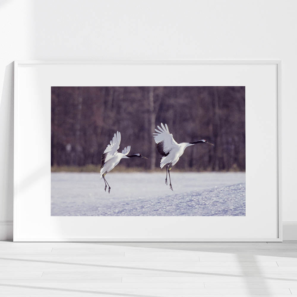 • High-Quality Printing: The fine details of the cranes and the subtle winter landscape are meticulously captured, ensuring a stunning finish across all material options.