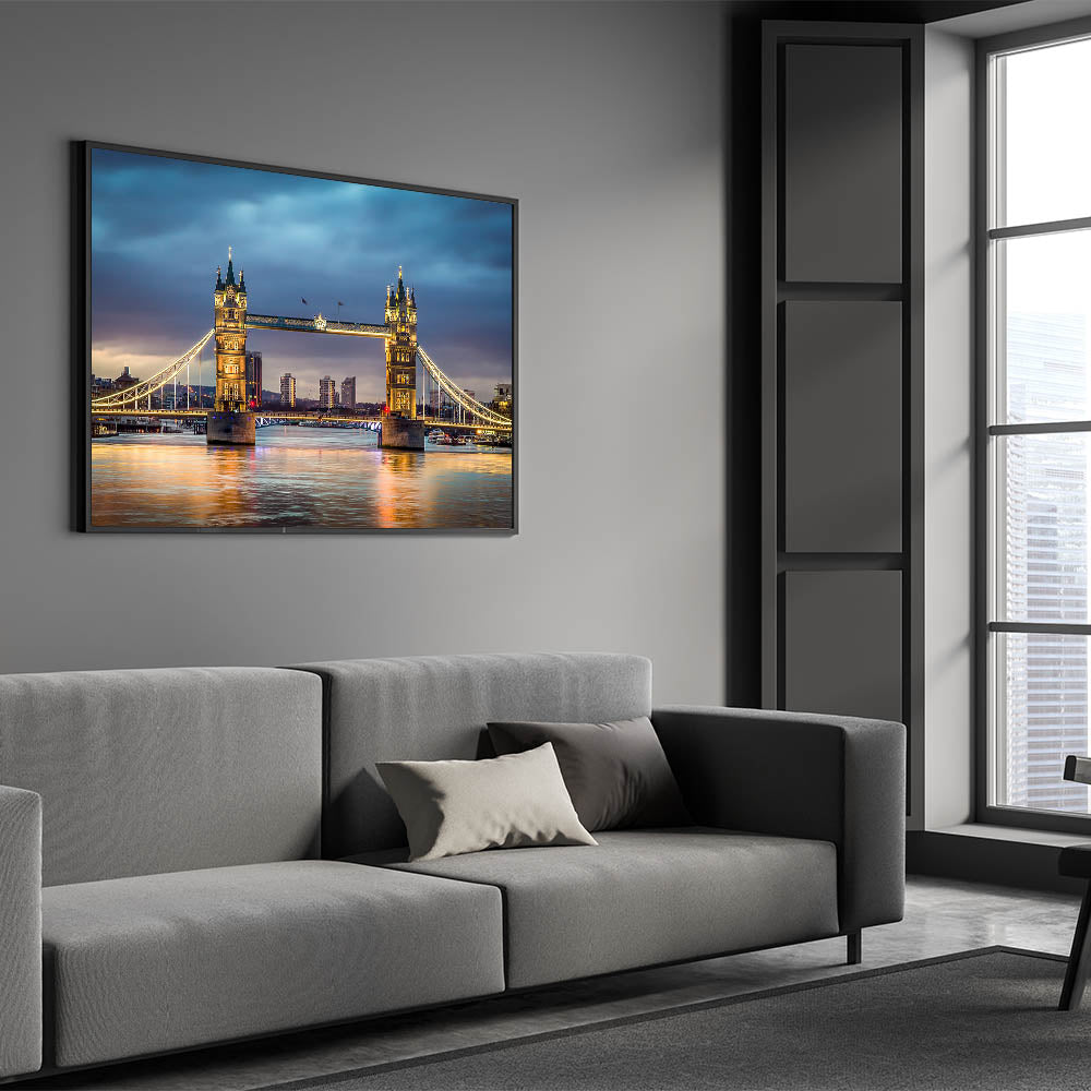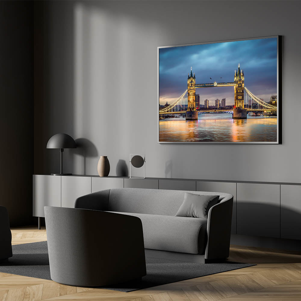 This unique London bridge wall art is more than just a decorative piece; it's a tribute to the timeless beauty of one of the world's most celebrated cities. Whether you're a fan of urban landscapes or historic architecture, this artwork will add a touch of elegance and sophistication to your space. Add this beautiful Tower Bridge print to your collection today and bring the magic of London into your home.