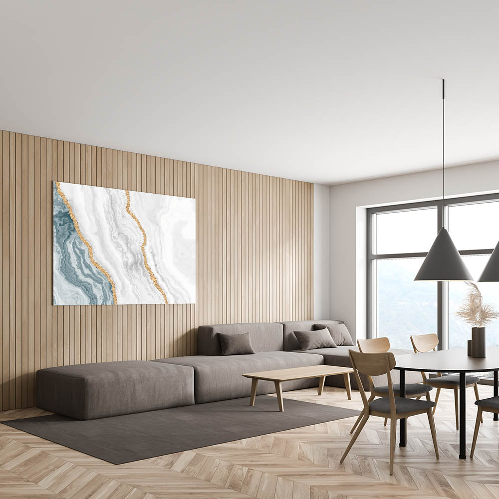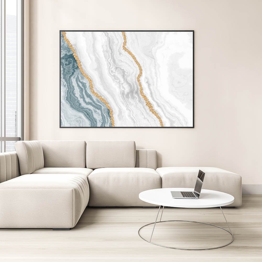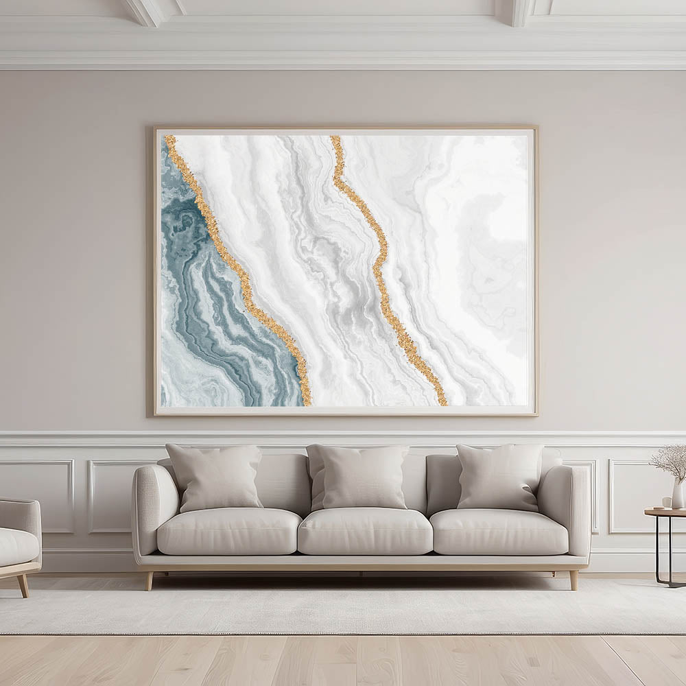 Immerse your space in tranquility with the "Oceanic Marble Abstract Art" canvas. This exquisite artwork features beautiful marble patterns in shades of blue and white, accented with gold highlights. The intricate design of strokes and lines creates a sense of depth and movement, making it a perfect addition to any modern or classic interior.