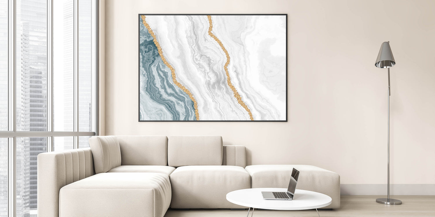 • Design: Elegant marble patterns with bold geometric lines and gold accents, ideal for enhancing your home or office décor.