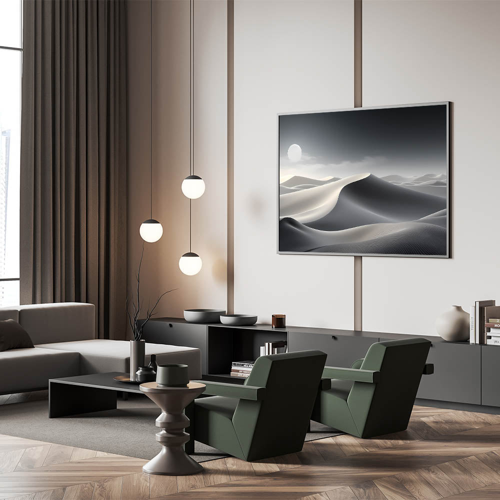 • High-quality lunar dune wall art available in various formats, including stretched canvas, framed canvas, acrylic glass, and more.