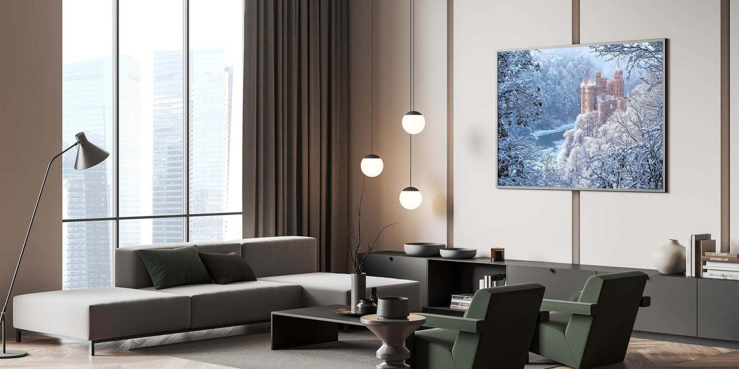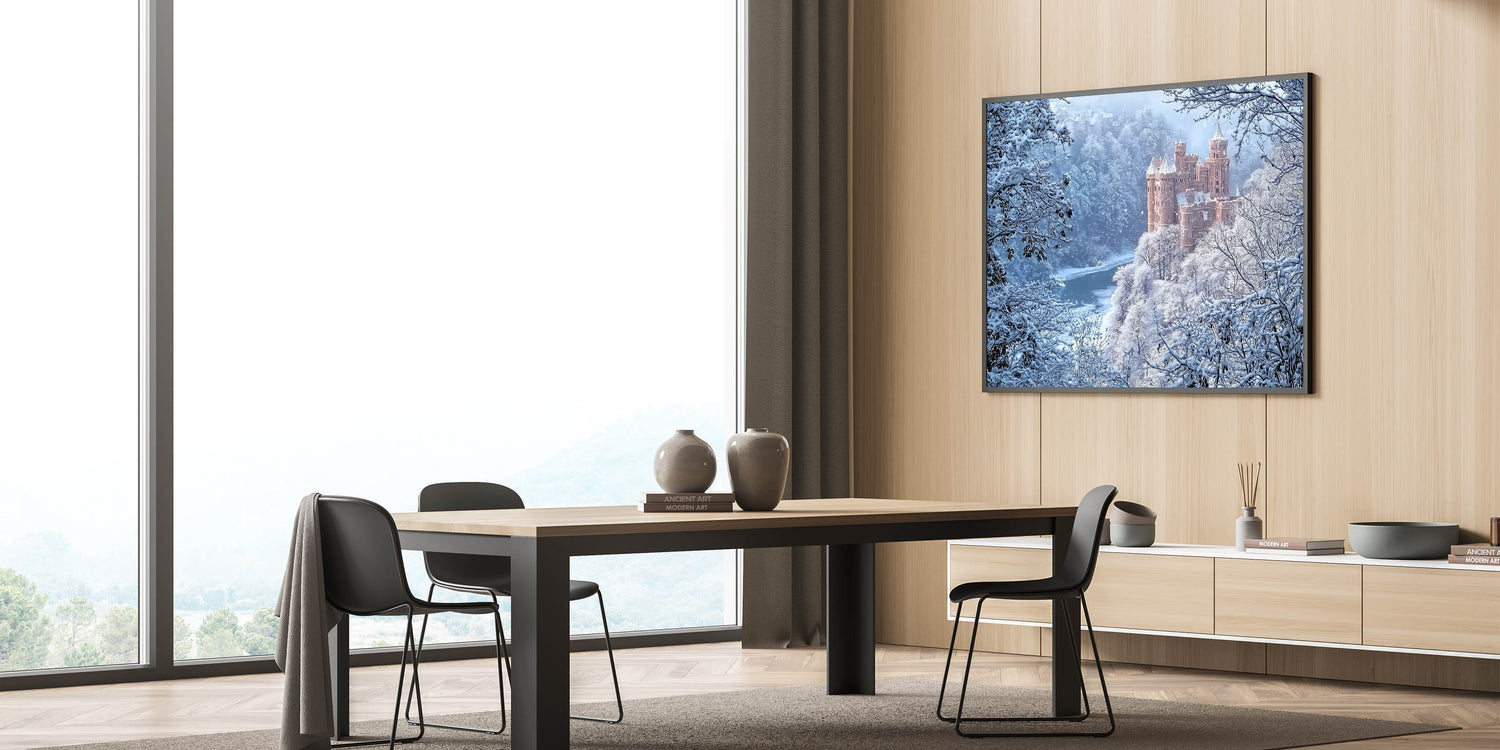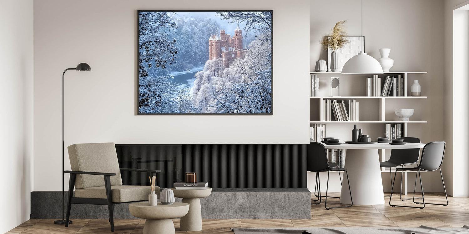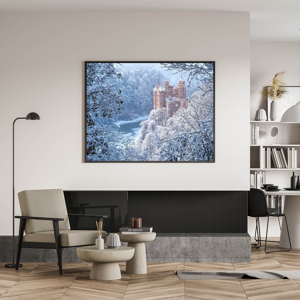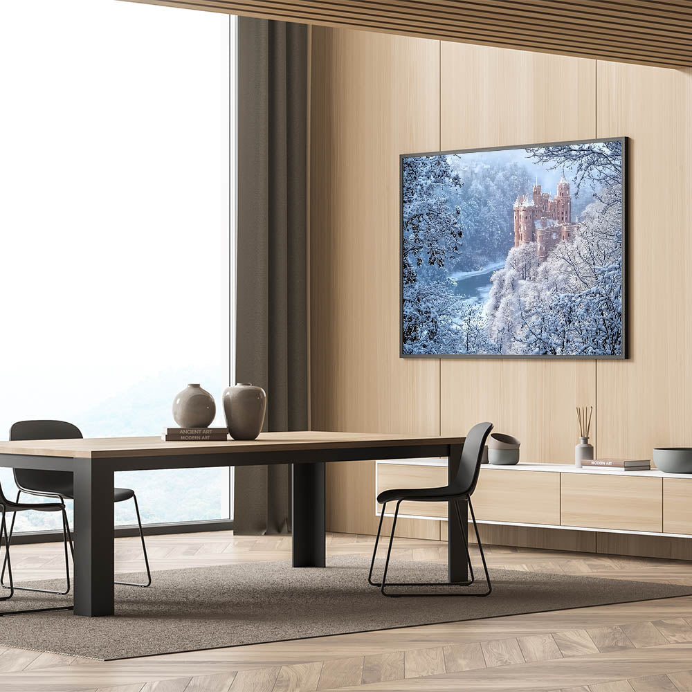 Transform your living room, study, or bedroom into a serene retreat with this unique castle artwork. Perfect for lovers of history and nature, this piece is a celebration of winter's beauty and medieval charm. Bring home the magic of snowy castles today!