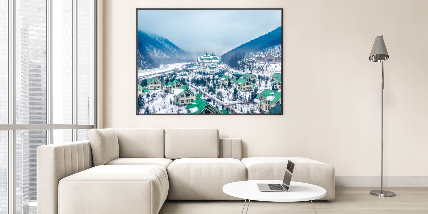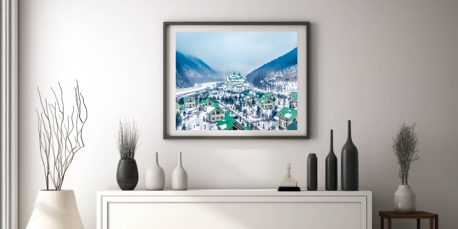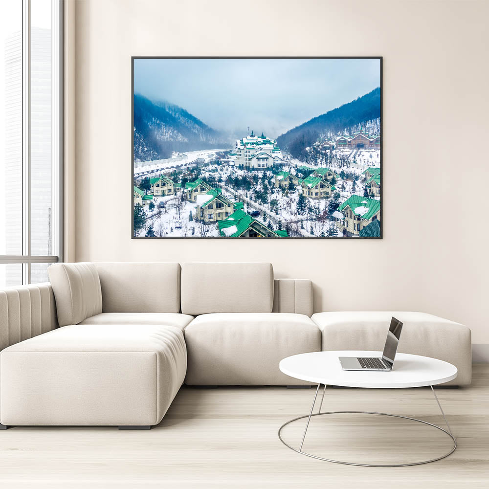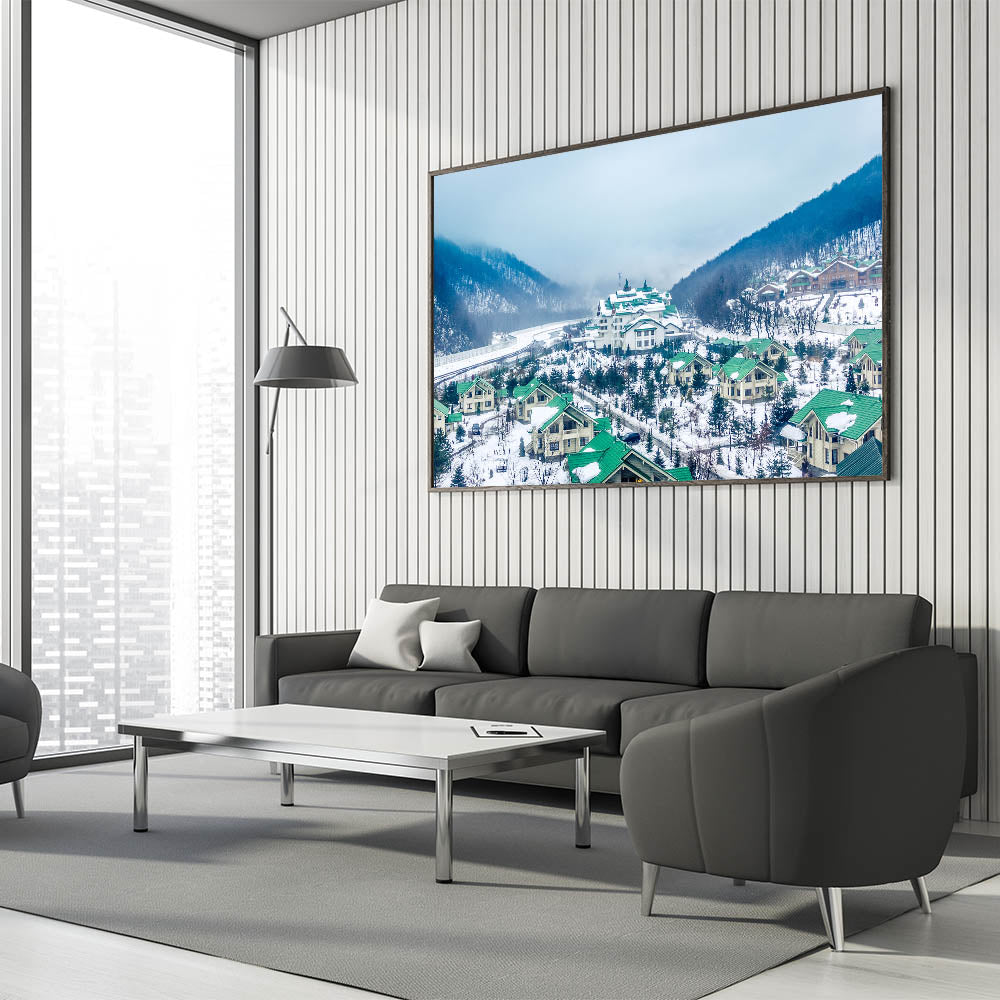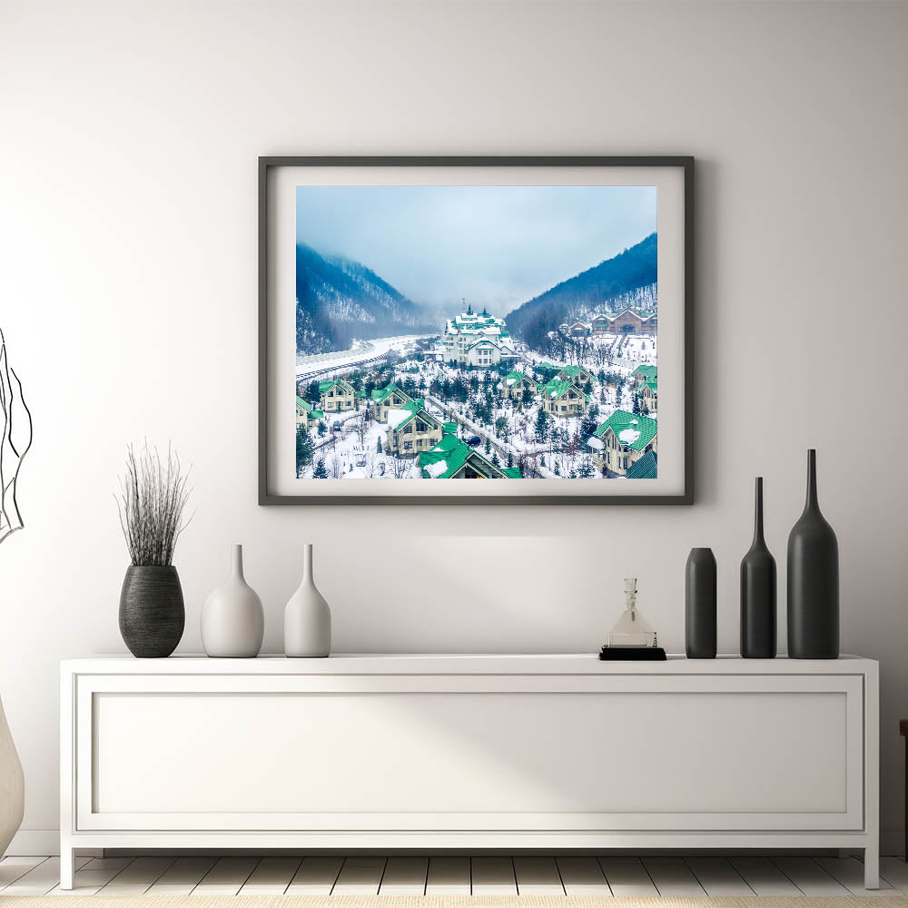 Embrace the tranquility of Sochi Skyline Art in your living space. This winter wonderland artwork is ideal for bedrooms, living rooms, or offices, allowing you to enjoy the scenic beauty of Sochi every day.