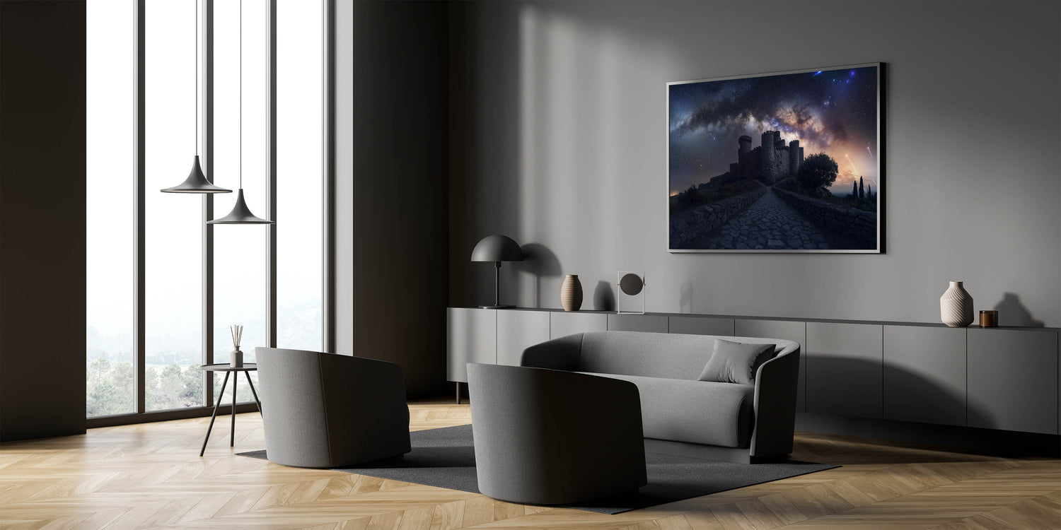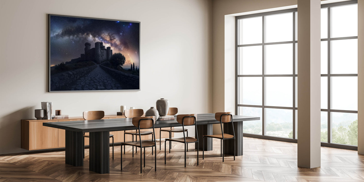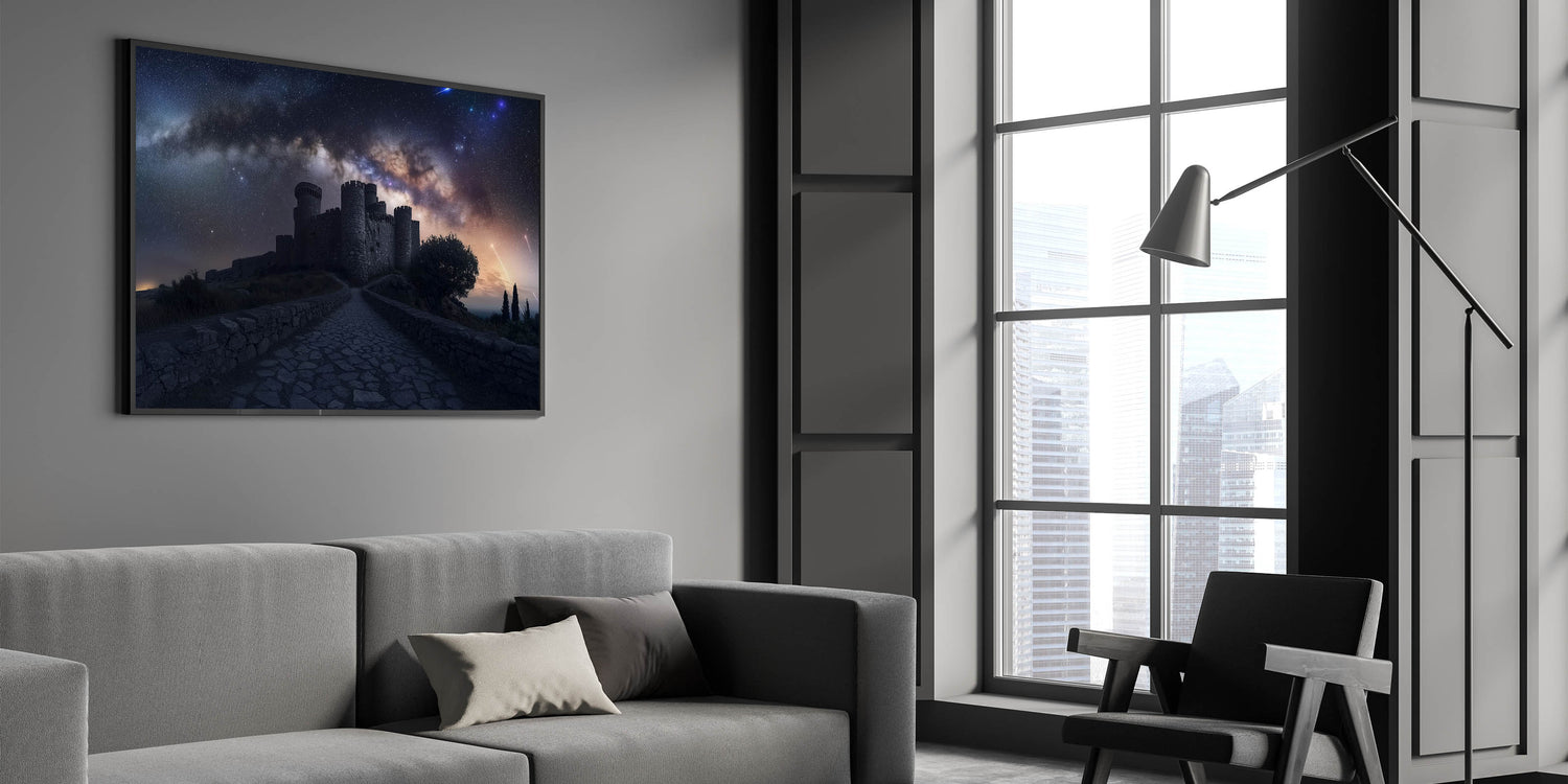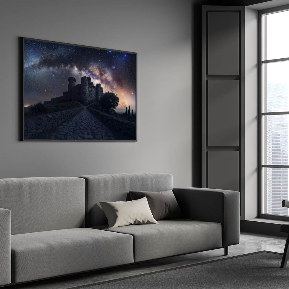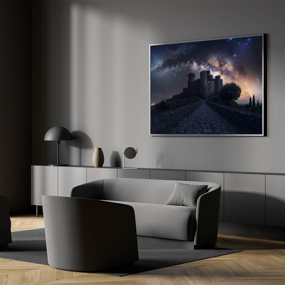 Whether you’re creating a gallery wall or searching for a statement piece, this high-quality castle print brings a sense of mystery and grandeur to your space. Let the timeless allure of this starlit fortress captivate and inspire your home or office decor.
