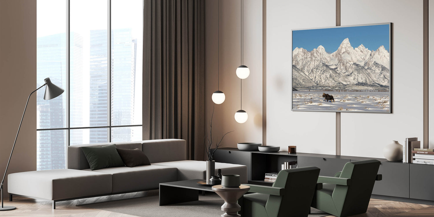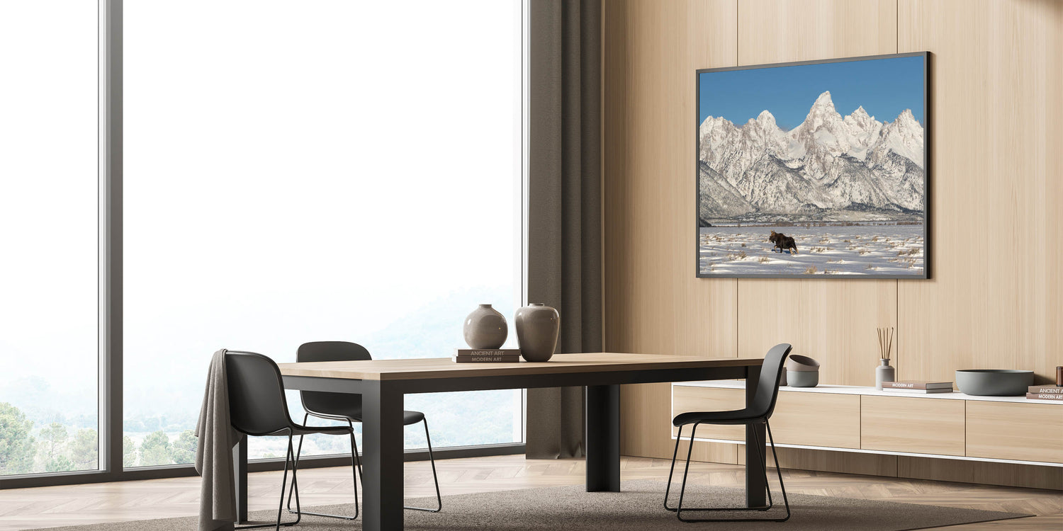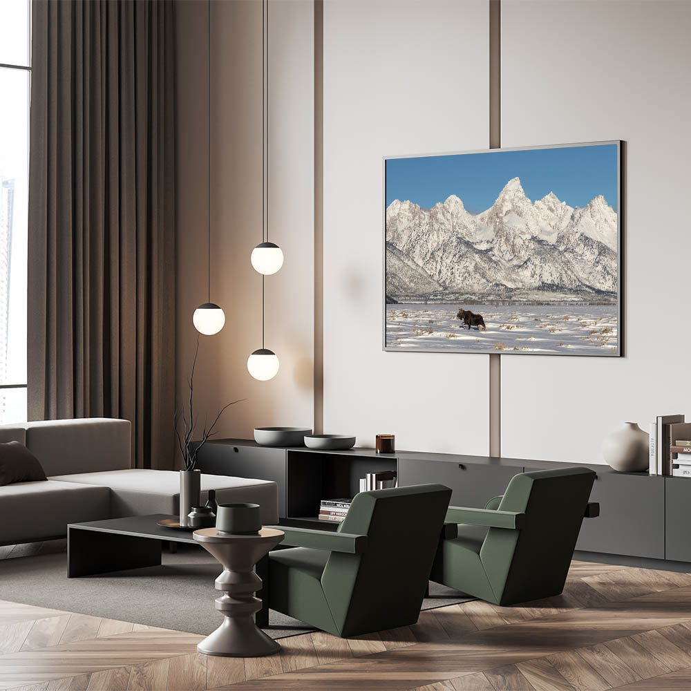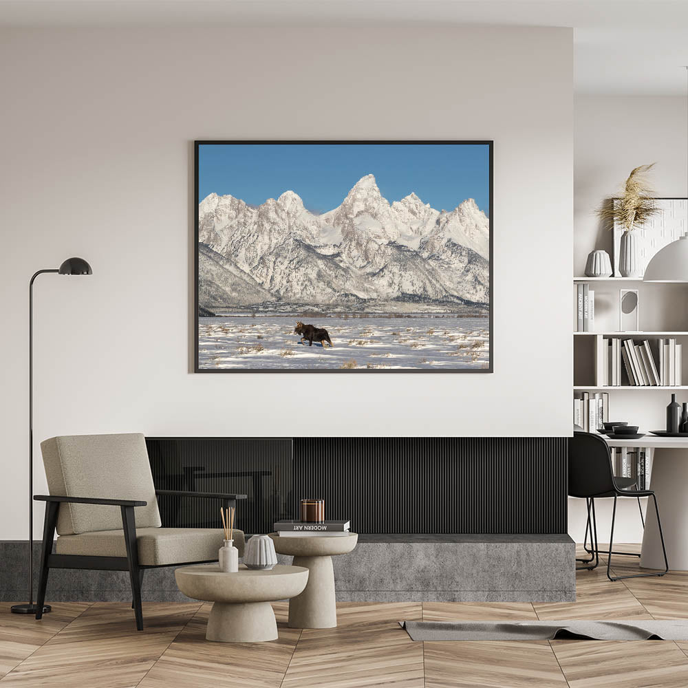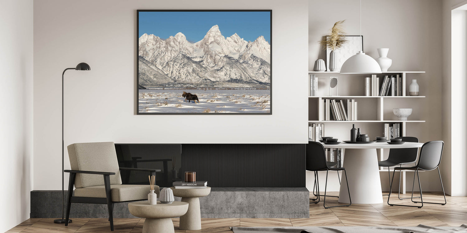 - High-quality Grand Teton wall art showcasing the beauty of winter wildlife and landscapes.